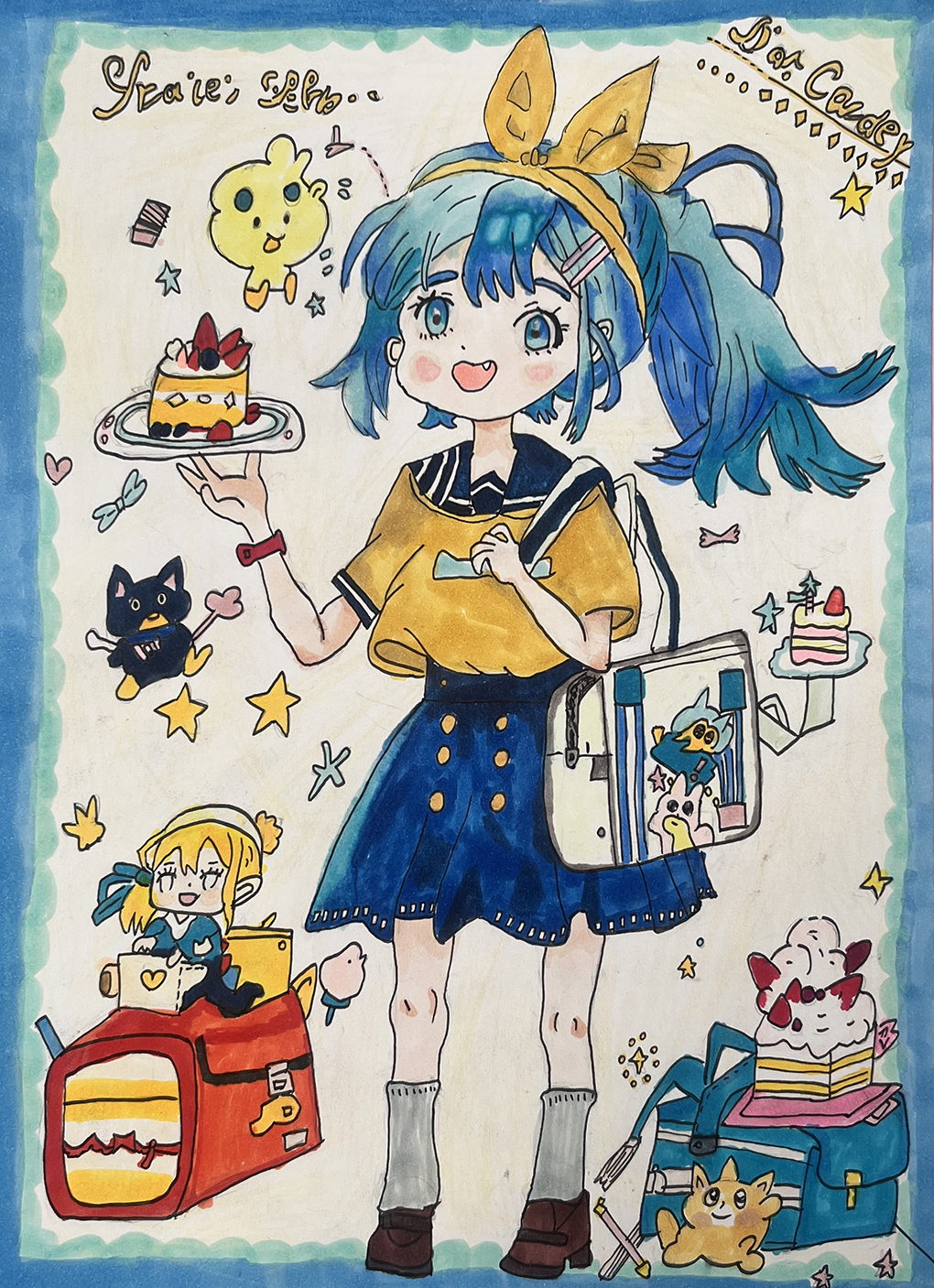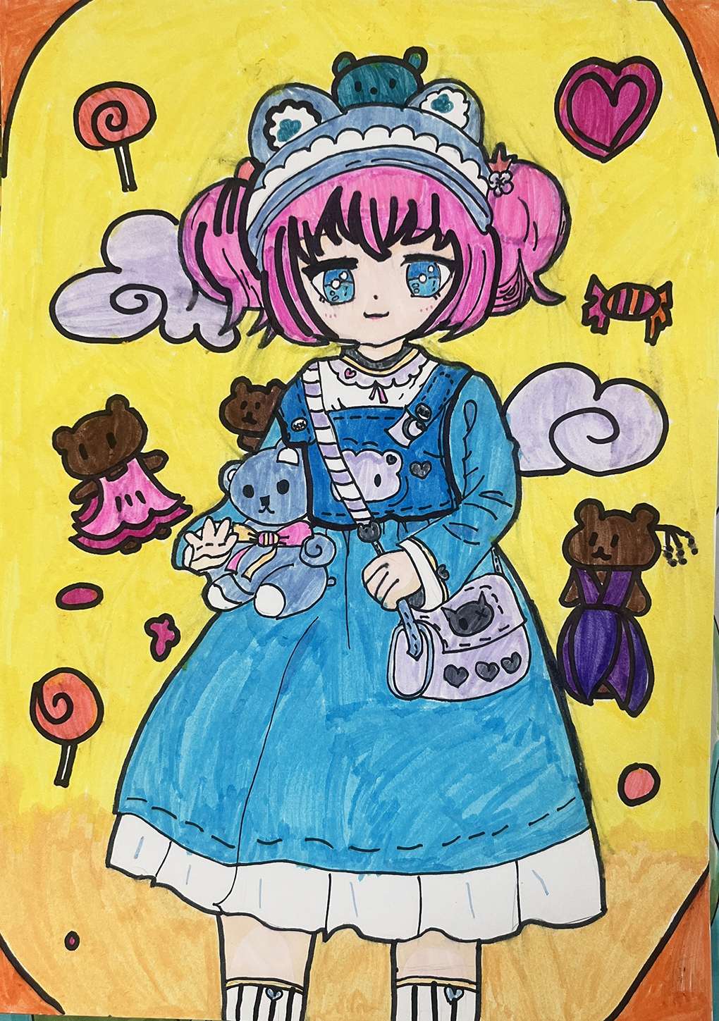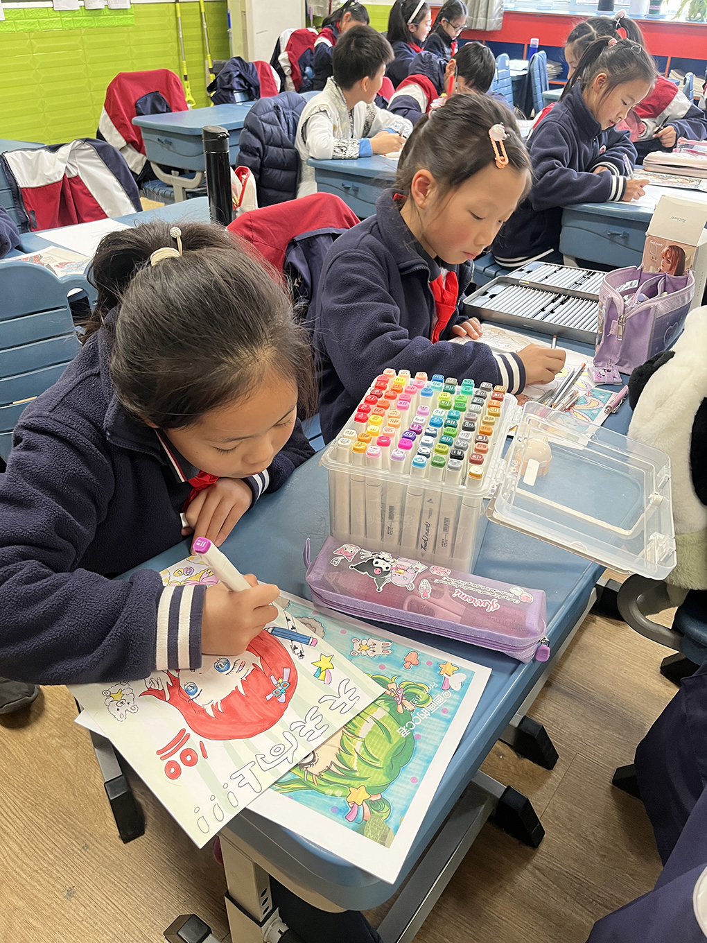 本学期的兴趣课因为是中低年级,有很多学生都是初学者,所以前几节课基本就是教他们起型,刚开始很多初学者不够自信,不敢画,不敢下笔,但是在鼓励之下,慢慢的三四节课之后整体的型开始有了动漫的感觉,就像三1班的曹筠岚,进步非常快,起型涂色较第一张都有很大的改变。除了造型以外,动漫上色和普通美术课上色不太一样,这些对于他们来说都是一种全新的挑战。但是对于已经有基础的学生则先开始画,当然在过程中也会进行整体型的修改。这些孩子的整体造型上色都很优秀,只不过一些细节方面需要不停调整,像三2班的王梦泽这是一个有基础的小姑娘,但是她的仔细认真打动了我,勤勤恳恳。除此之外还有很多很多同学,画的好的人越来越多,第一次接触的人也有很大的进步。