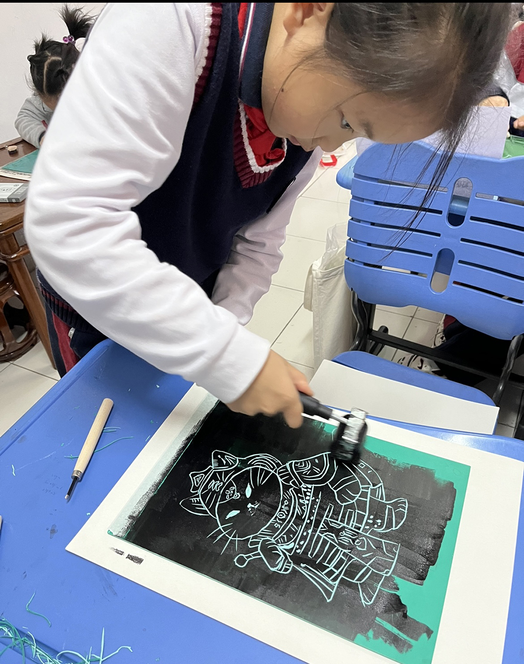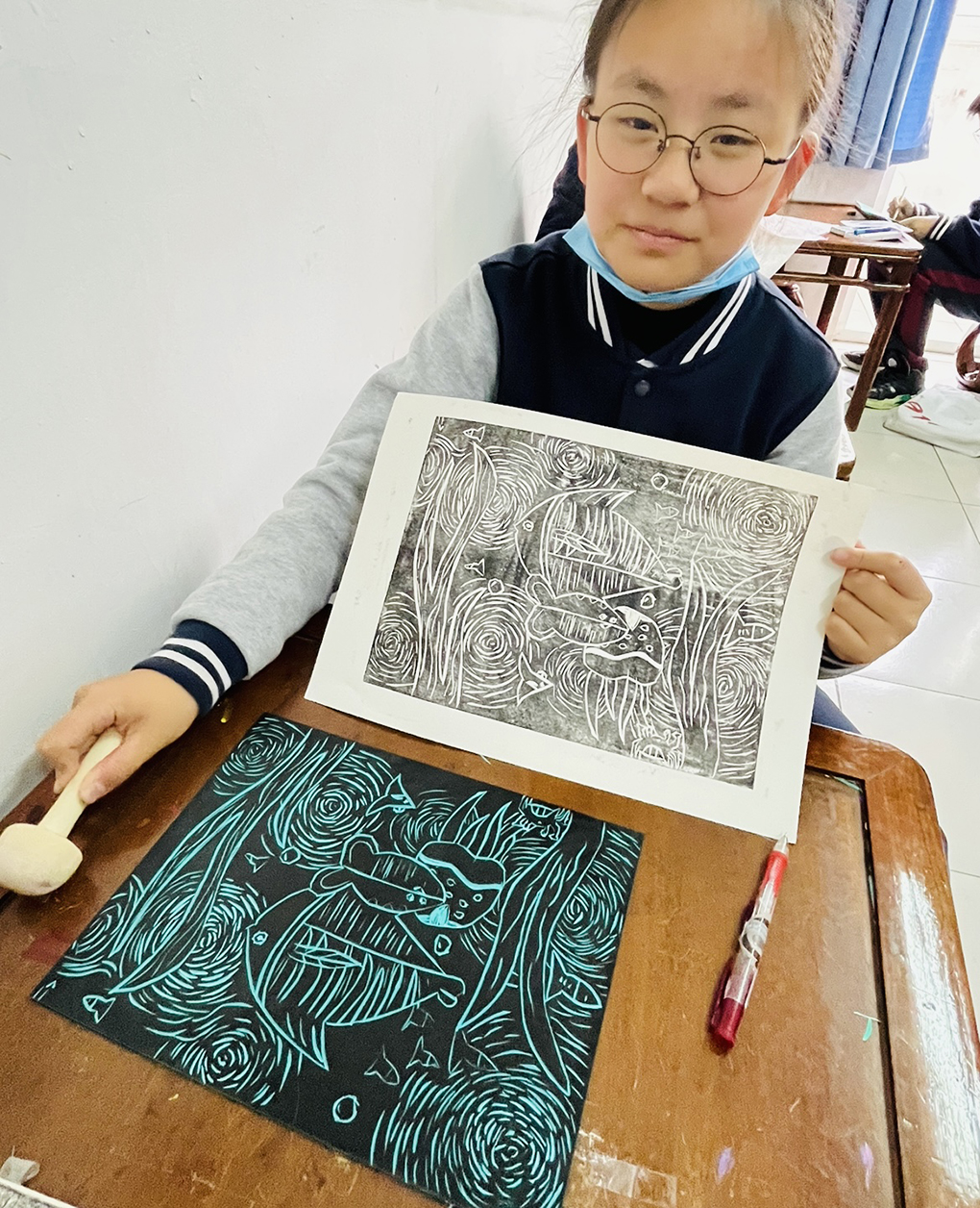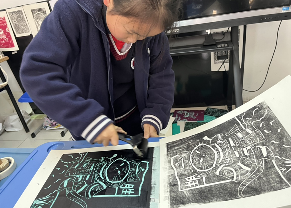 从他们认真专注的神情中,可以感觉到孩子们对拓印物语胶版版画兴趣组的浓厚热情,并且在完成后都很自豪地给大家鉴赏自己的作品成果,这让他们有一种满足感和愉悦感,相信这也是我们这次兴趣班活动开展的成效,而在开展活动中不仅仅只是培养他们的动手能力,也在一定程度上开发了孩子个性发展,培养了孩子的兴趣、特长、爱好,一定程度上提升了学生的实践能力和综合素质,为素质教育的推进奠定了基础。