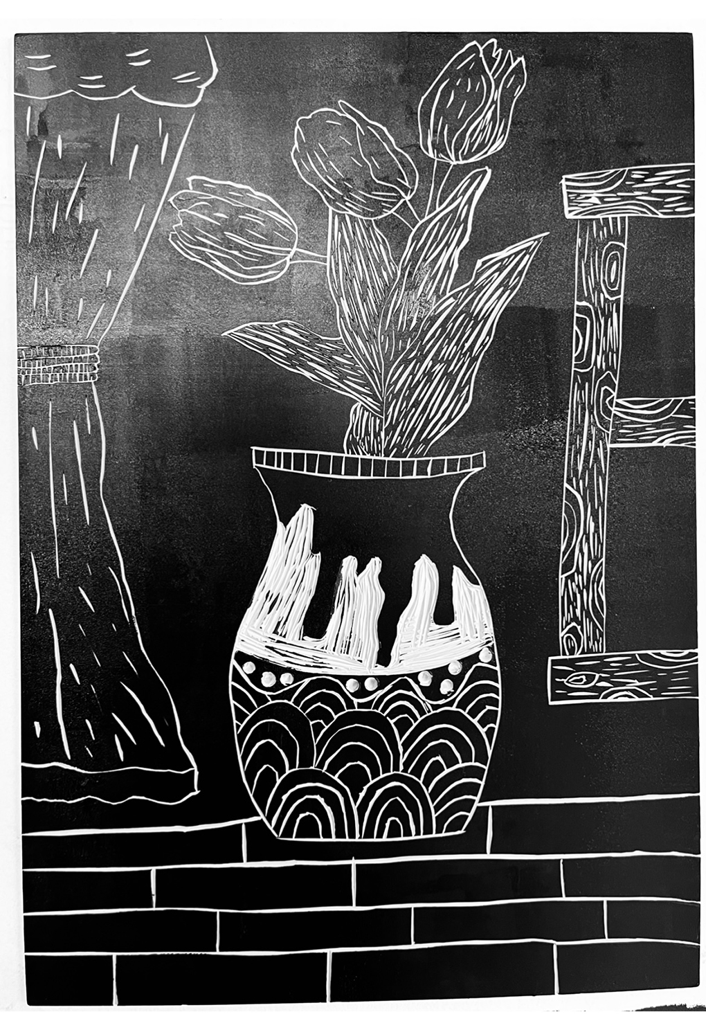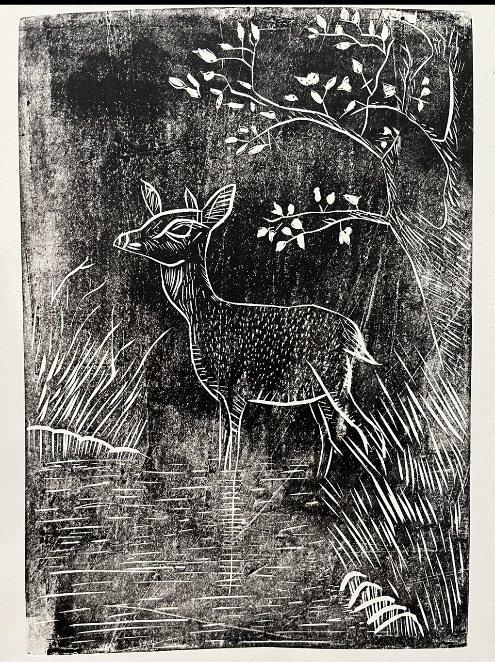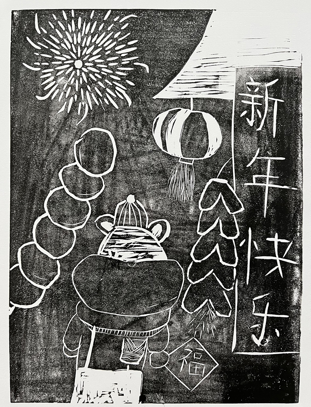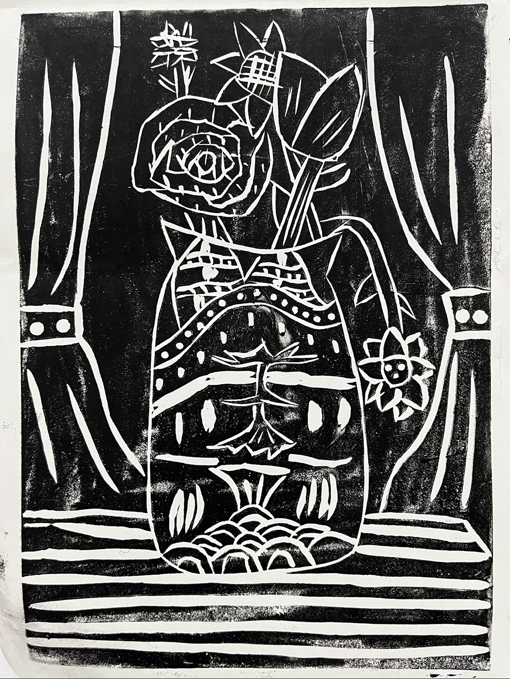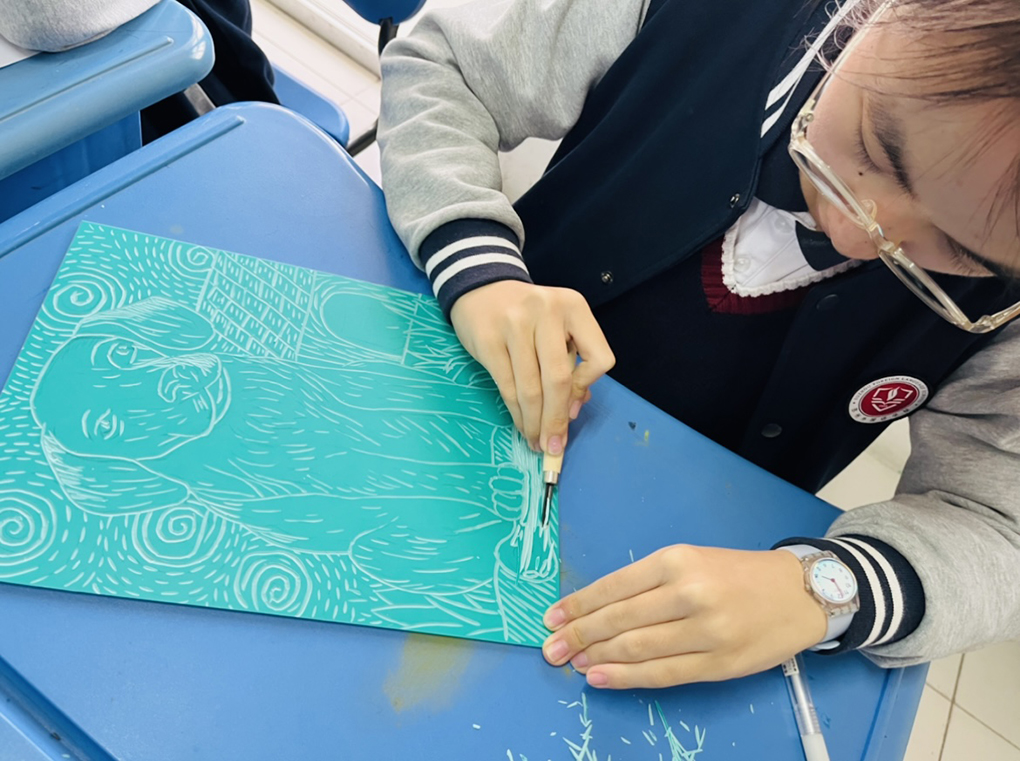 这次我们学习的就是版画中的一种——胶板版画。“胶板版画主要应用在中小学的孩子中间,因为胶板相比较木板和铜版来说,质地没有那么坚硬和难以控制。”胶板是一种新兴的版画材料,是以刀在麻胶版面上雕刻后印刷出来的图画。与传统的木刻版画,吹塑纸版画相比,它雕刻轻松,方便操作,可塑性强。麻胶版画的制作技巧与木刻版画类似,只是更易于刻制,但不适合制作风格过于精细的作品,适合初级版画爱好者。而且胶板的质地没有那么坚硬和难以控制,所以在安全性的角度来讲,胶板版画更加适合孩子们的使用。