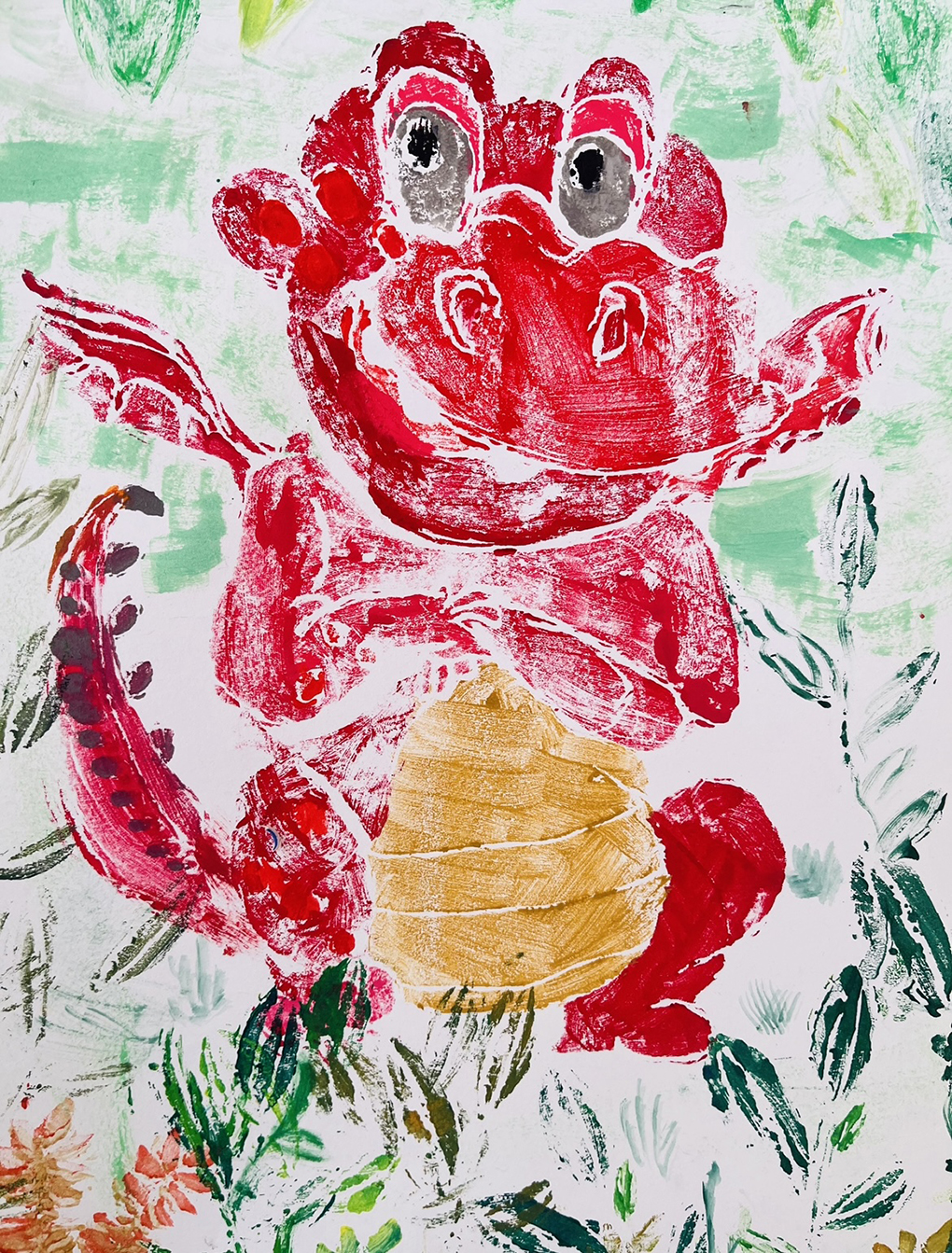 粉印版画是运用吹塑纸或泡沫板等材料刻制出图画底板,然后用水粉颜料把底板上的形象拓印到画纸上的一种绘画形式。这学期学生创作出了许多吹塑纸版画艺术,这些丰富的课程和活动培养了学生对版画的兴趣和爱好,增长了知识,丰富了学生的文化生活,孩子们用智慧的双手画出了无数的作品。
