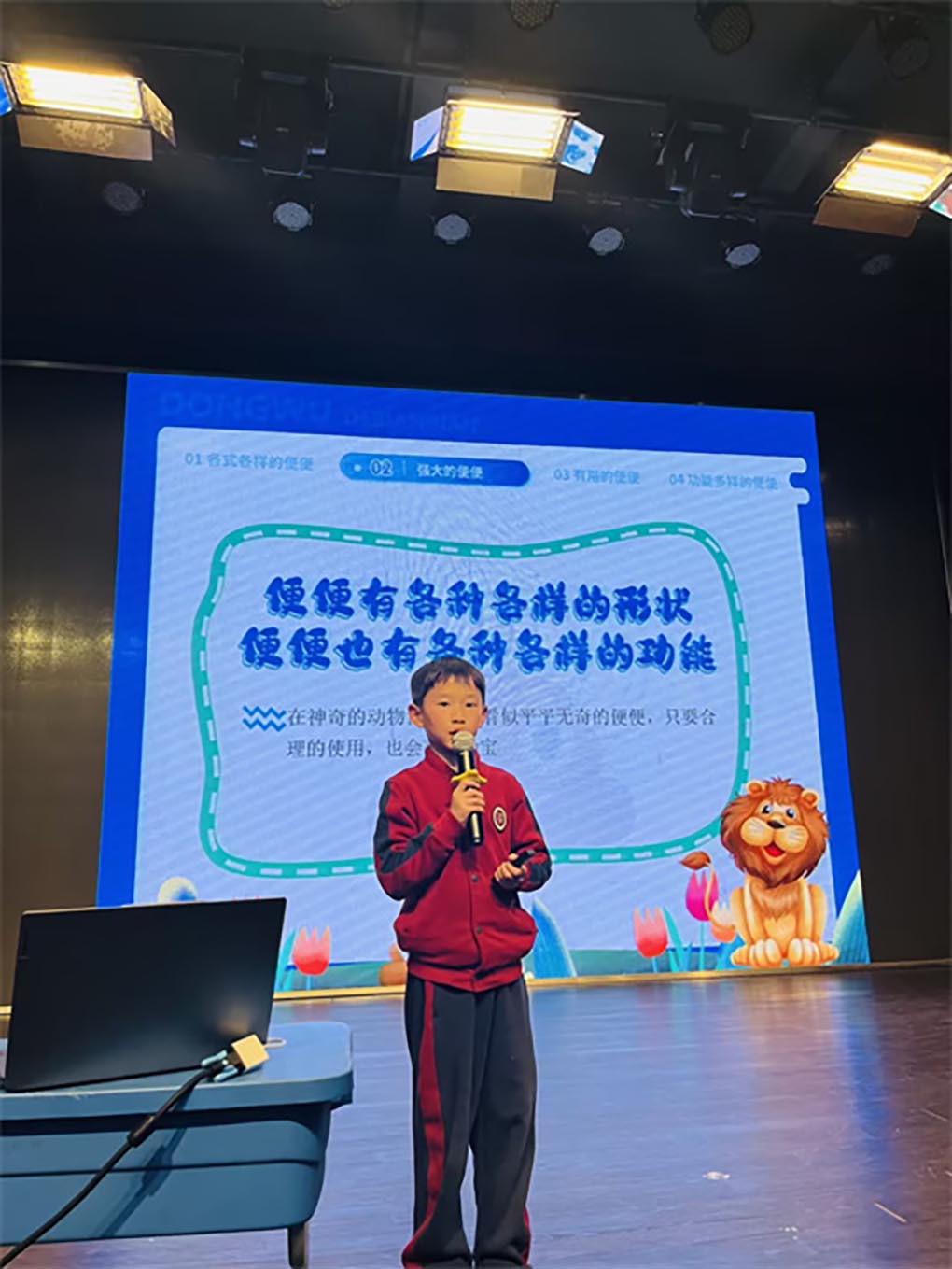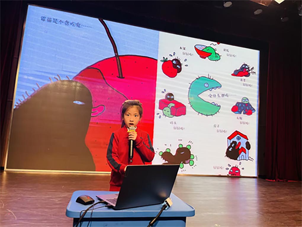 我们每天都会拉便便,医生可以通过便便了解我们身体是否健康。自然界中,所有的动物也会拉便便,不光形状不一样,功能也不一样哦!AC一(4)班的陈熙霖小朋友为我们分享科学故事《嗯嗯,我在便便》,分享后的互动环节更是让小朋友们热情高涨,积极参与其中。