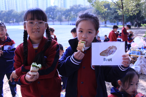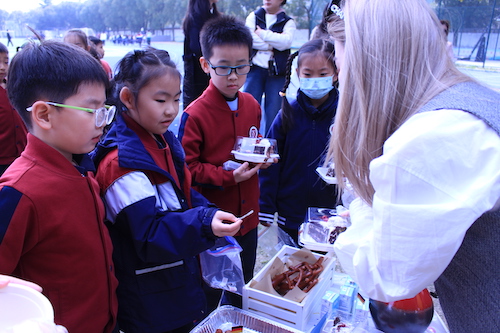 在春日的午后,阳光温暖,微风轻拂。多语种与数学组携手跨文化主题实践活动:春日里的美食盛宴。四个语种的孩子们排着整齐的队伍,手握数学书本里的虚拟纸币,来到了心心念念的美食前。家委会的妈妈们个个神通广大,不光给孩子们准备了丰富的美食,还精心地布置了每个展台。多语种和数学的完美结合,配合着香气逼人的美食,使得整场活动精致而又温馨。孩子们不光在实践中训练了数学圆角的换算规则,还又一次再大自然中操练了外语,吸引了很多老师、学生的驻足。今后,多语种还会发散思维,多创设跨学科主题活动,让孩子们在成长中更多的获得不一样的独特体验。