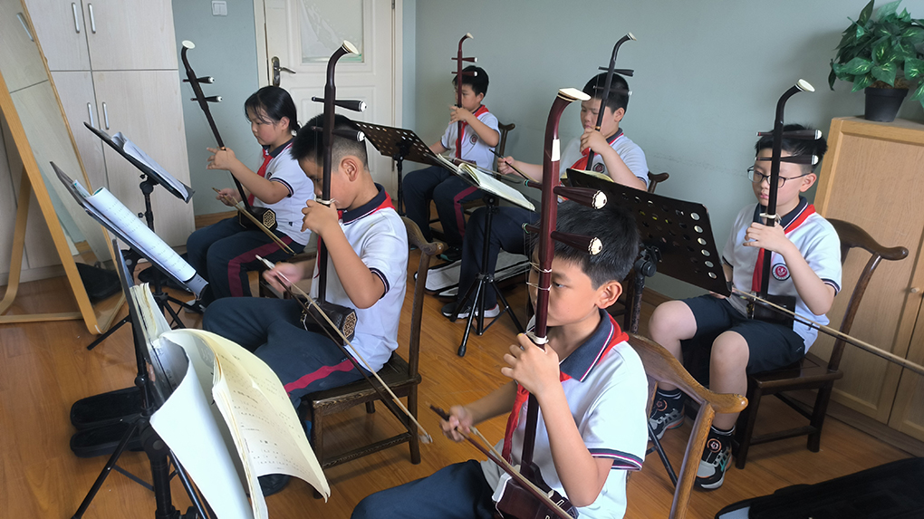 本学期二胡兴趣小组的活动依然如火如荼地展开。热爱二胡的同学们齐聚一堂,他们怀揣着对这一古老乐器的热情与喜爱。在这里,无论是初涉二胡领域的新手,还是已有一定基础的爱好者,都能找到属于自己的一片音乐天地。