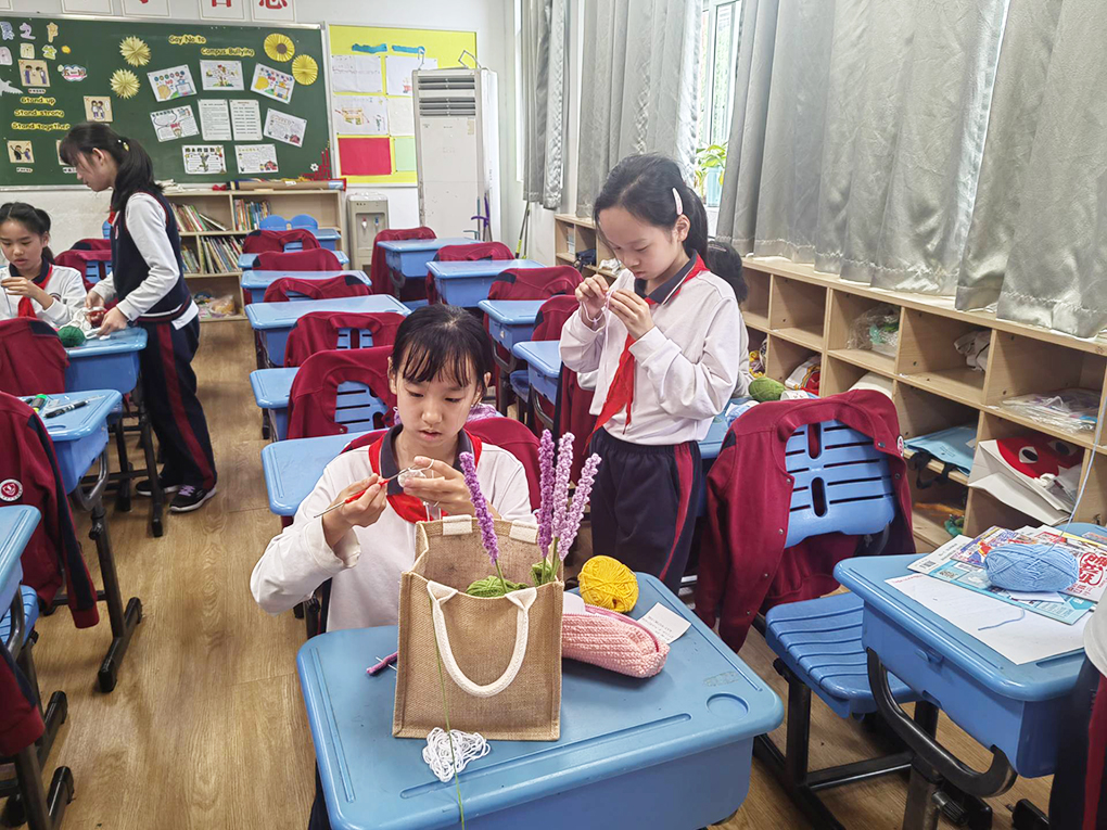 手工的温度,便是把爱藏进一针一线里。钩针编织技艺是我国的传统手工艺术,也是非物质文化遗产。它是人们在长期生产生活中创造并世代相传的智慧结晶,具有实用性和艺术性并存的特点,并被广泛应用于我们的日常生活中。本学期,钩针编织兴趣组圆满收官,一年来,孩子们收获满满,从最初的拿针、绕线、起针,到各种针法的练习,再到一个个成品的制作,孩子们实现了质的飞跃。
