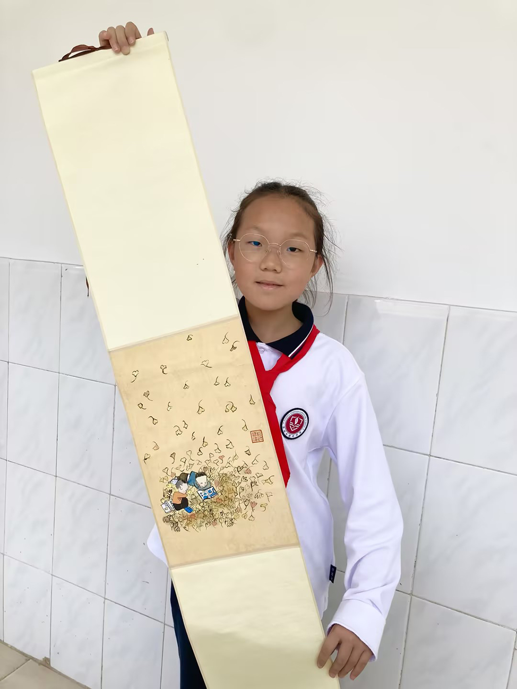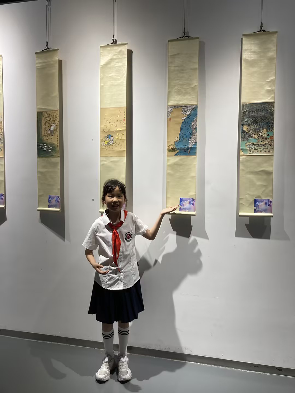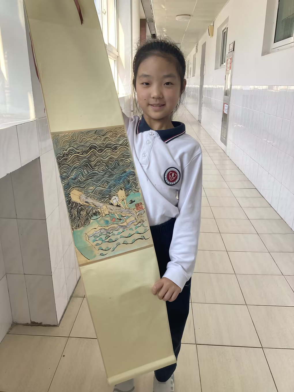 墨分五色,画不尽大好河山;纸有生熟,传不完灿烂文明。国画是我国的传统绘画,是用毛笔蘸水、墨、彩作画于绢或纸上。一笔一墨传国粹,一砚一纸润童心。行于水墨间,大家感受到了孩子们稚嫩的“豪情”了吗?“小荷才露尖尖角”,愿孩子们传承国粹,用心感悟,自由遨游在笔墨艺术的天地,描绘心中对未来美好世界的畅想。期待国画兴趣组的更多精彩!