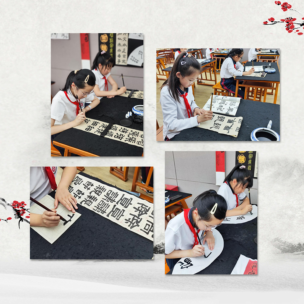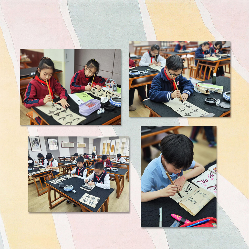软笔兴趣小组的学生来自三到六年级,他们怀着对书法的热爱,积极参与兴趣组活动。每周集中一次在书法专用教室练习,由鲜老师指导同学们如何执笔、运笔、布局等基本技巧。此外,还会定期穿插学习一些书法史,观看视频,了解书法家背后的故事,让更多人了解和欣赏软笔书法。