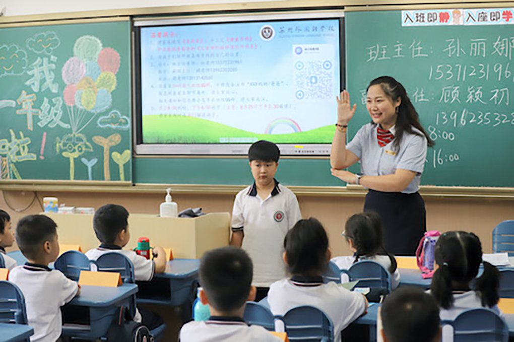 小朋友们在老师们的指引下,找到了班级、找到了座位。一个个空座位逐渐被小可爱们填满后,各班老师开始了行动——为了让小朋友们尽快地认识彼此,老师鼓励大家大声地做简单的自我介绍,有的介绍了姓名、年龄、毕业的幼儿园,有的还增添了兴趣爱好,有的告诉老师自己已经学会的本领。紧接着,认识教室、摆放书包、牢记座位等任务在老师的指引下有序地进行着,为接下来的课程与活动铺开道路。