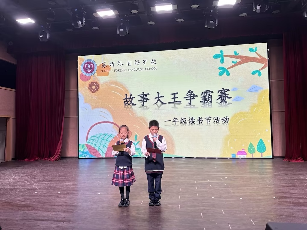 经过两个星期的层层角逐,最终每个班选出两位故事大王,参加年级组内的争霸赛。他们分别是AC一(1)班夏昀泽、孙煜祺,AC一2班孙于杭、尹言翕,AC一3班阚瑾瑜、杨瑞安,AC一(4)班张艺霏、陈子妤,AC一(5)班 张胡妍、王爱柔,AC一6班朱芷峤、潘辰烨。