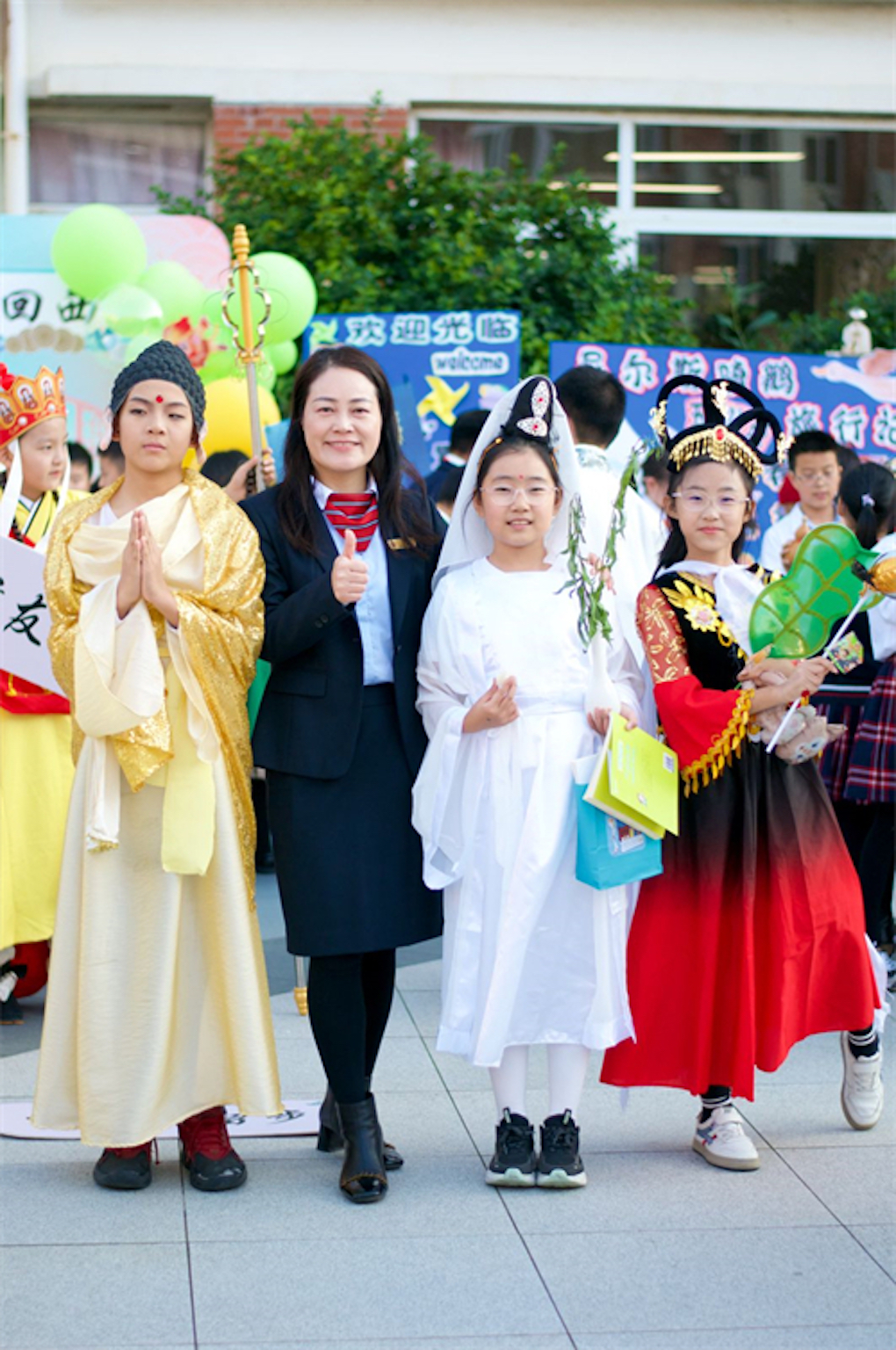 “演一演,胜千言”,学生们极具表现力,能将扮演的角色完全融入剧中,加深了对名著内容的理解,感受到名著的艺术魅力,在苏州外国语学校年会之际,在“书影漫游”的活动中经过了全体师生的再创作,《西游记》的主创们赢得阵阵欢笑喝彩和啧啧称赞,无数的学生和来宾挤在摊位前,抢着跟演员们合影留念……孩子们在活动中体验快乐,在快乐中得到教育,特别是与会来宾的啧啧称赞让学生们体味到名著的魅力,也明白了为人处世的道理。伴随着孩子们的欢声笑语和依依不舍,“书影漫游”《西游记》展演活动圆满地落下了帷幕。