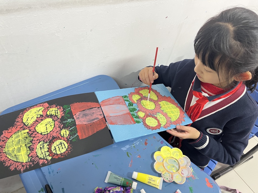 粉印版画是将手工与绘画相融合的一种艺术表现形式。通过既动手又动脑的制作过程引起制作者浓厚的兴趣,培养学生细致精巧的劳作能力,开发学生的创造力,启迪学生的智力。通过体验,得到美的享受和成功的喜悦,培养了学生的审美情趣和对传统艺术的热爱。