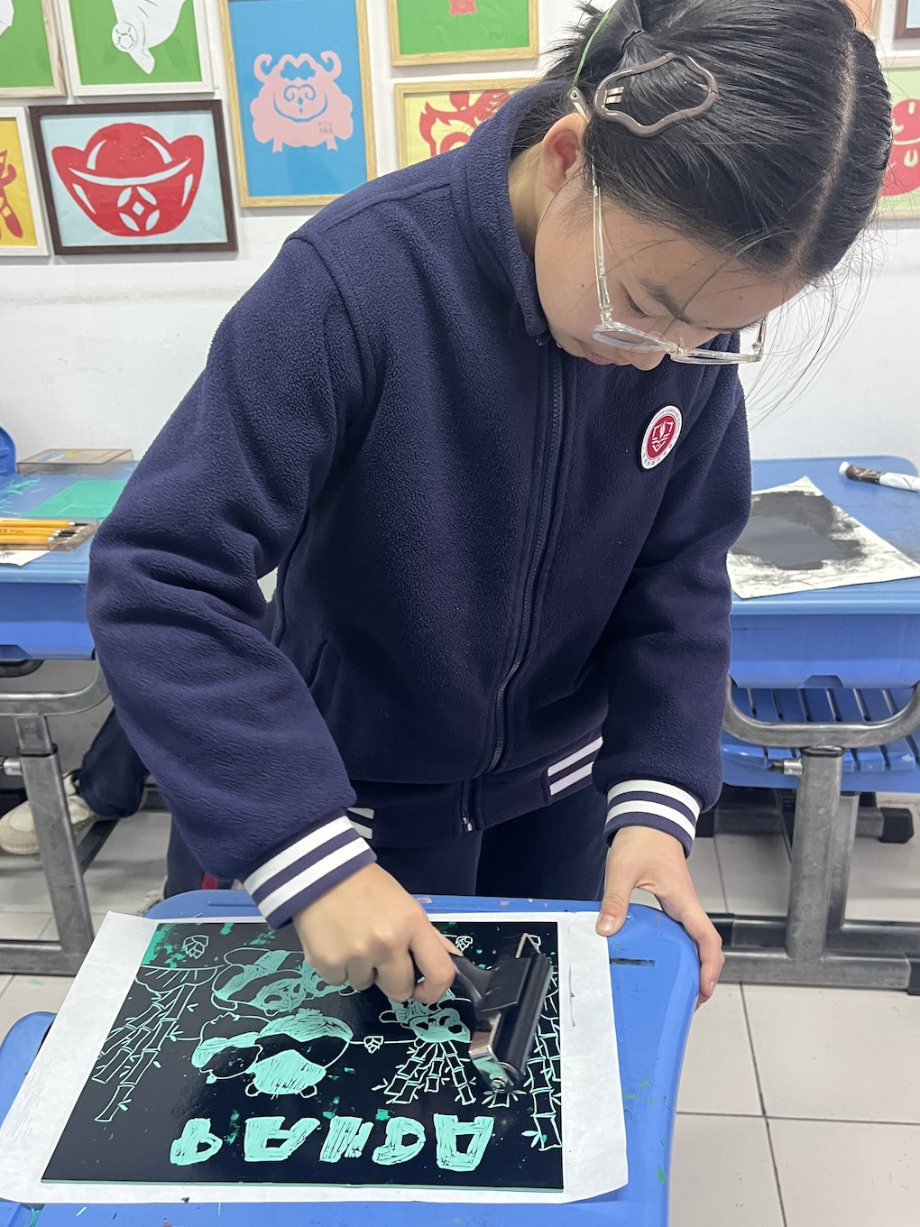 在“拓印物语”的课堂上,孩子们化身小小艺术家,手持刻刀,在柔软的胶板上细心雕琢图案,以线条为笔,勾勒出心中的艺术世界。随后,通过多次精心调配油墨与印刷,一张张蕴含童真与创意的版画作品逐渐成形。孩子们的全情投入,不仅体现在每一刀一刻的专注中,更渗透在每一幅作品所散发出的浓厚兴趣与无限想象里。现在,就让我们一同走进这个充满惊喜与灵感的殿堂,共同欣赏本学期孩子们那些令人赞叹的优秀版画作品吧!