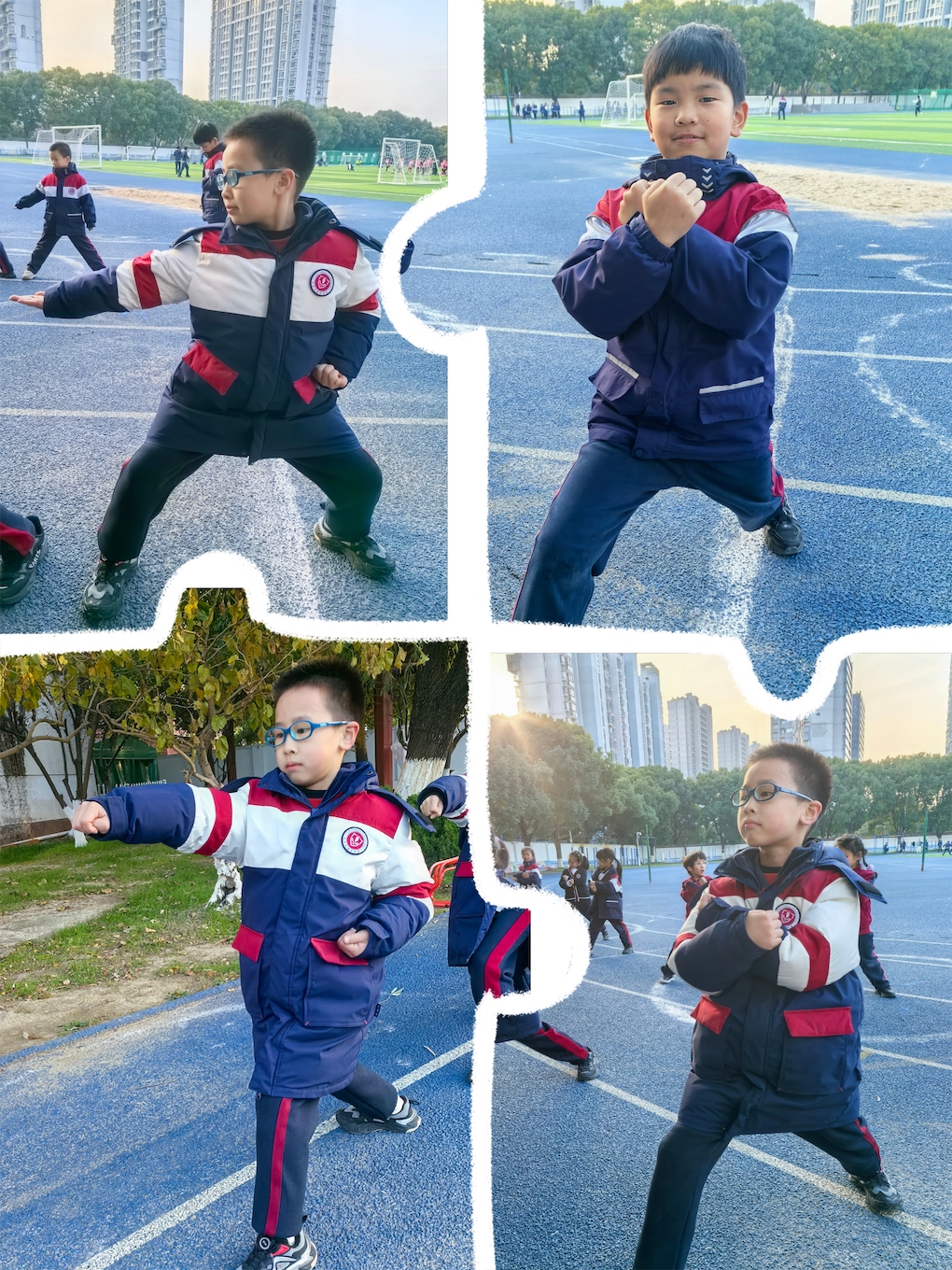 在课堂上,老师们根据低年级学生的特点,量身定制了教学内容。从基础的武术站姿、抱拳礼起步,到步型、手型的教授,每一招每一式都充满了力量。学生们在反复练习中,不仅提升了身体协调性和肌肉力量,更为后续学习复杂动作打下了坚实的基础。