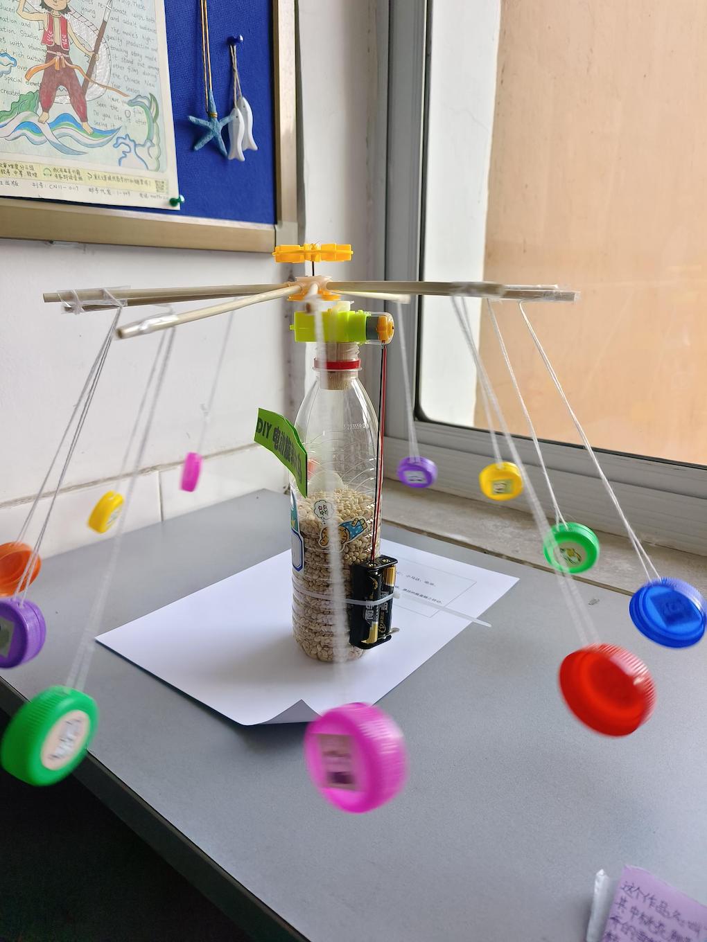另一边,姚予正同学的“糖果魔法盒”前排起了长队。这个用废旧纸盒打造的自动糖果机,只要轻轻一拉机关,糖果就会像被施了魔法一样自动跳出来。小魔法师们一边排队领糖果,一边研究着其中的机关奥秘,简直比吃到糖果还开心!