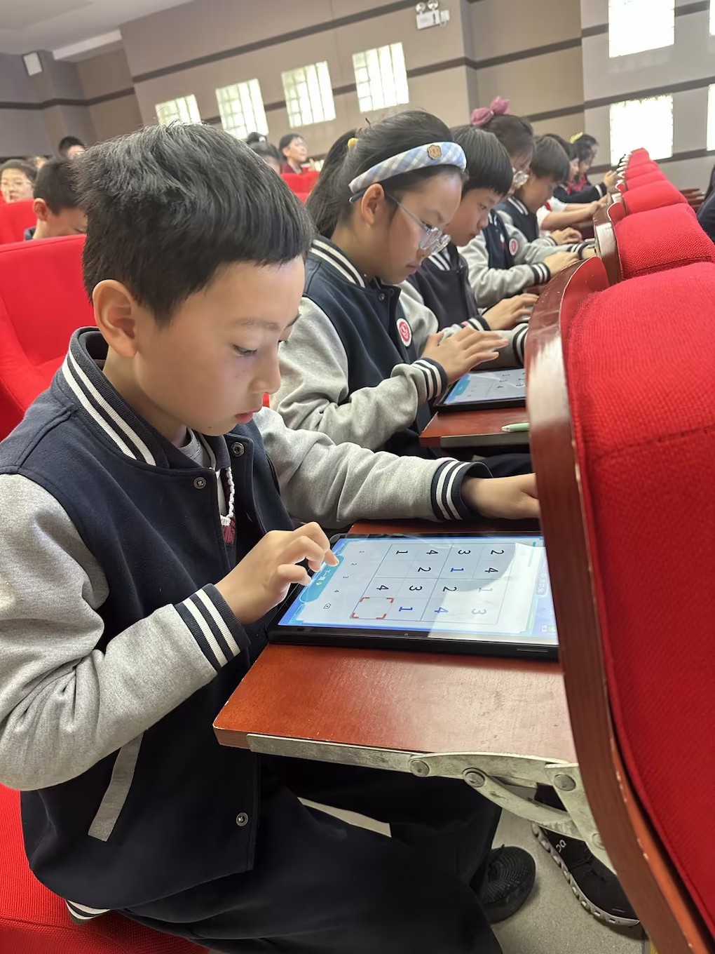 4月2日中午,苏州外国语学校报告厅内鸦雀无声,50名四年级学生正全神贯注地盯着平板电脑,手指在屏幕上快速滑动。这里正在举行"2025年四年级数独解谜挑战赛"决赛,一场关于数字、逻辑与速度的巅峰对决如火如荼地进行着。