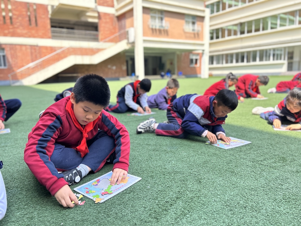 为激发学生的地理学习兴趣与爱国情怀,培养观察实践能力,科技体育节特别设置了三年级地图拼图竞赛。赛事采取班级选拔制,经过前期各班级内部评比,最终遴选出各班前十强选手参与年级决赛。