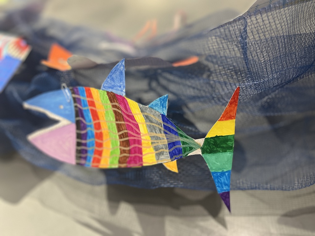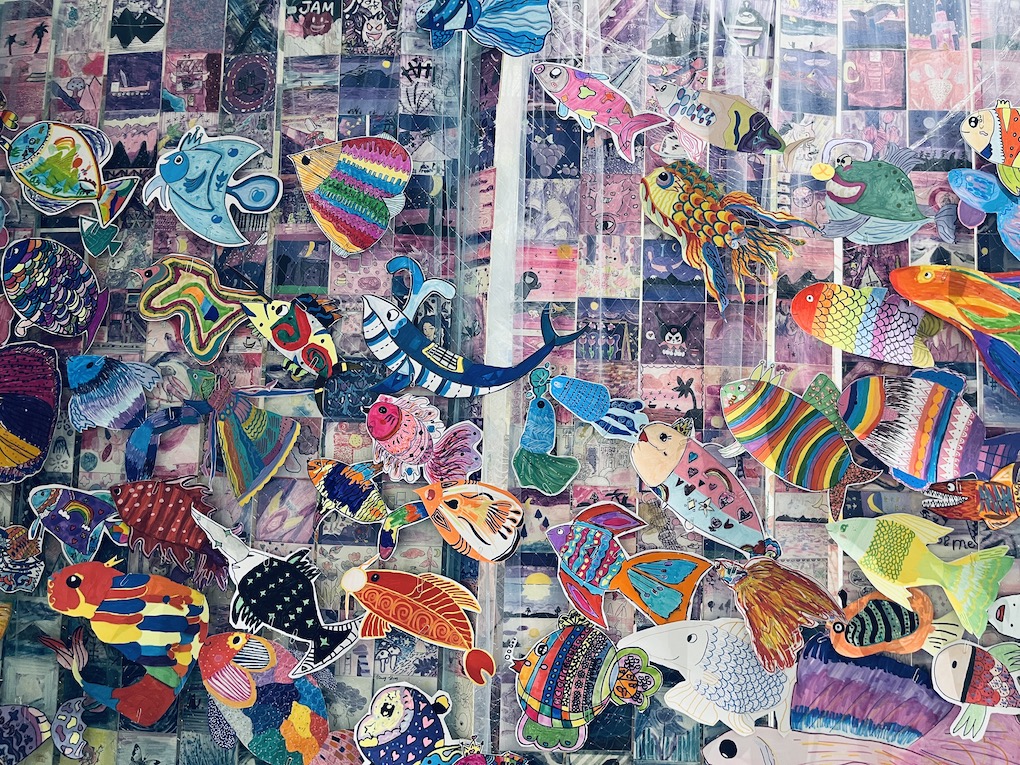 此外,不同昆虫、鸟类、鱼类、陆地生物等都有不一样的呈现效果。室内和室外展览同时进行,让学生、老师和家长感受到自然与人类的和谐共生,带来不一样的视觉感受。愿这场艺术与生态的和鸣,能在每个人心中种下一粒种子,待来时,万物共生。