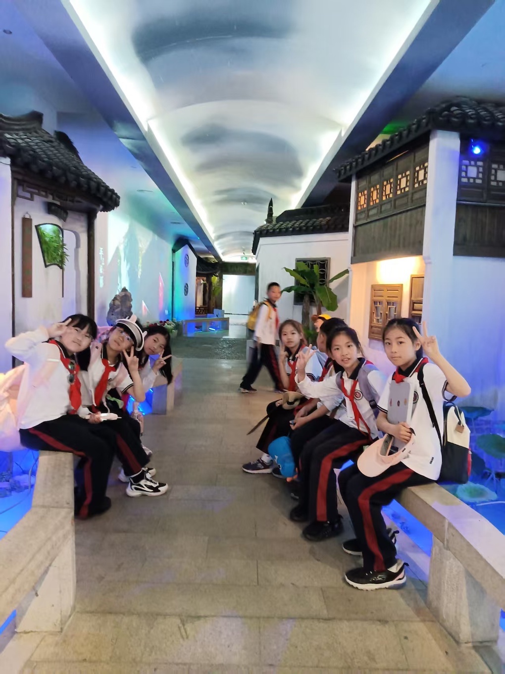 除了丰富的展示内容,苏州城市展示馆的建筑设计也别具一格。它巧妙地融合了苏州传统园林元素与现代建筑风格,白墙黛瓦、小桥流水,营造出一种宁静而优雅的氛围。在这里,参观者不仅可以了解苏州的城市发展历程,还能在欣赏建筑之美的同时,感受到苏州独特的地域文化魅力。孩子们穿梭于古代繁华商业街区,时而化身掌柜、时而模拟店小二用创意吆喝声阵阵招徕顾客,特别有意思。