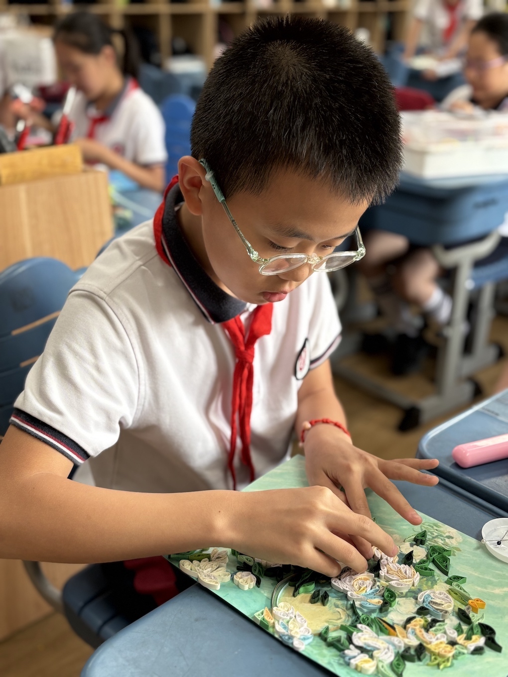 “纸为衍纸” 兴趣课不仅是课余时光的调味剂,更是学生艺术素养提升的沃土。在构思、创作的过程中,他们学会将脑海中的创意具象化,用普通纸条编织出艺术梦想,观察力与专注力也在反复实践中得到锤炼。随着课程深入,学生们的作品愈发惊艳,他们自豪地在课堂上展示成果,并计划将这些饱含心血的衍纸作品装点教室。未来,这些精致的纸艺作品将化作校园里独特的风景线,让艺术气息在校园中流淌。