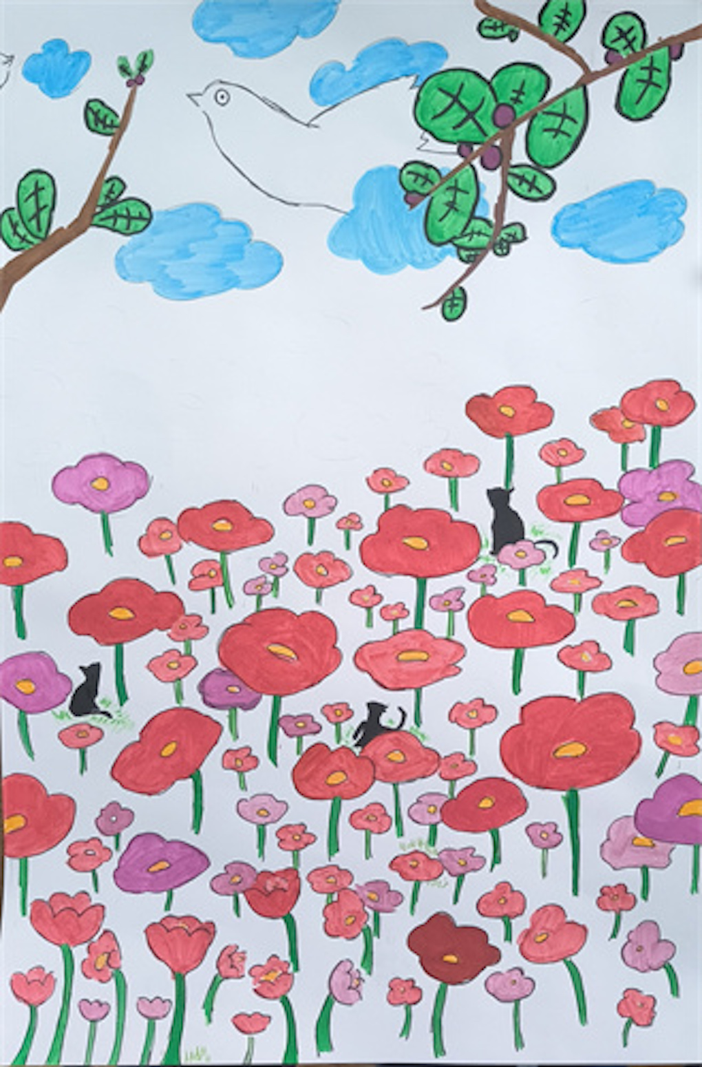 本学期的艺术之旅更放眼世界。孩子们汲取日本插画师桥口泉笔下充满想象力的造型语言和明快梦幻的色彩魔法,在绘画中注入童趣盎然的现代生命力。同时学习乌克兰艺术家Nina独具匠心的构图思维,打破常规视角,在画面中营造出引人入胜的视觉节奏与故事张力。桥口泉的绮丽色彩、Nina的构图智慧,都被他们自然地化用自己的创作中。