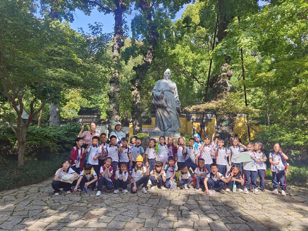 活动伊始,同学们怀着崇敬的心情走进范仲淹纪念馆。在讲解员的细致引导下,孩子们透过珍贵的文献资料、生动的场景复原,深入了解了范仲淹“先天下之忧而忧,后天下之乐而乐”的家国情怀。大家认真聆听历史故事,不时驻足观察、轻声交流,在潜移默化中接受了一次深刻的文化熏陶。随后,师生们在天平山标志性建筑前合影留念,一张张笑脸定格在秋日的暖阳与古朴建筑交织的画面中,成为此次活动的第一份珍贵记忆。