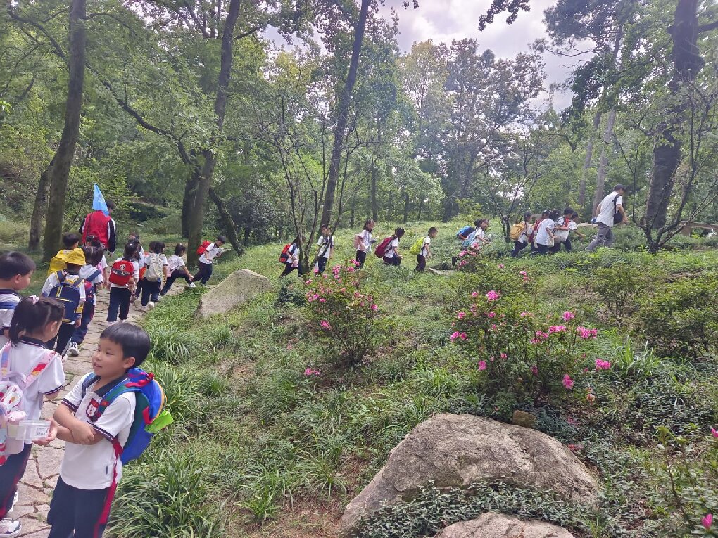午后时光,同学们沿着山间步道徒步登山。虽然山路略有坡度,但大家相互鼓励、携手前行,在汗水与欢笑中体验着坚持的意义,感受着登顶时俯瞰秋日山林的畅快。随后的草地野餐环节更是将活动氛围推向高潮,大家分享着带来的美食,交流着一天的见闻,欢声笑语在秋日的空气中回荡,定格下友谊与陪伴的温暖瞬间。 此次天平山社会实践活动,不仅让孩子们近距离触摸了秋天的脉搏,更巧妙融合了科学观察与美术创作的学科内容,真正实现了“在实践中学习,在体验中成长”的跨学科教育目标。参与活动的同学纷纷表示,这不仅是一次快乐的秋游,更是一堂生动的户外课堂,收获满满,意犹未尽。