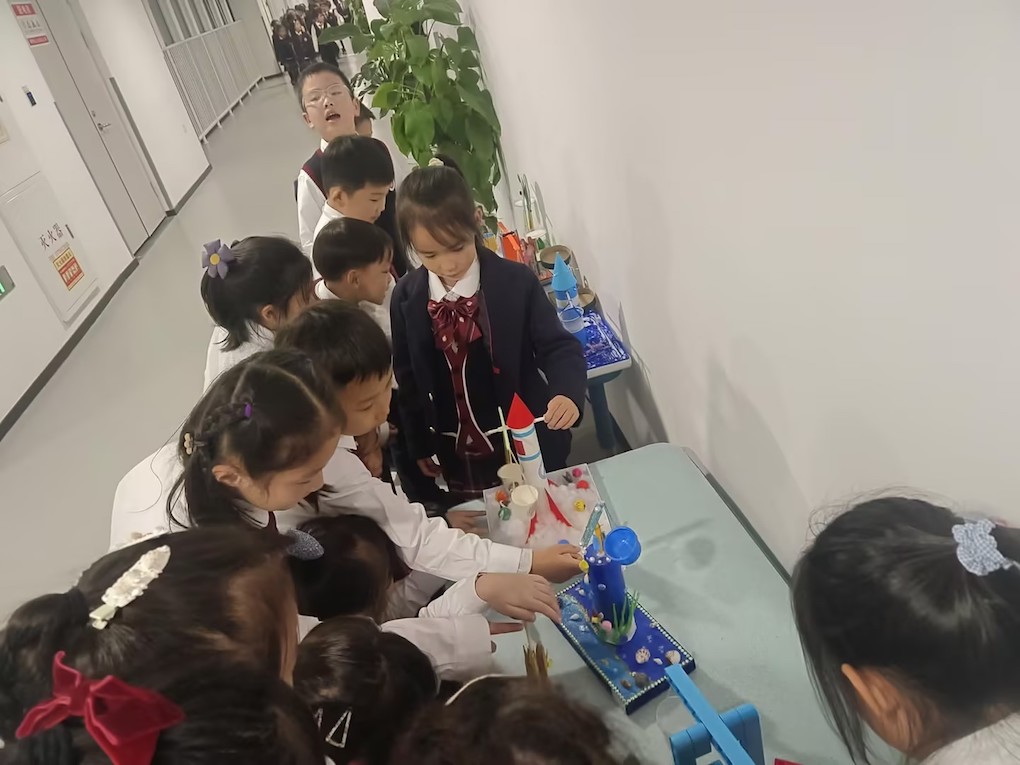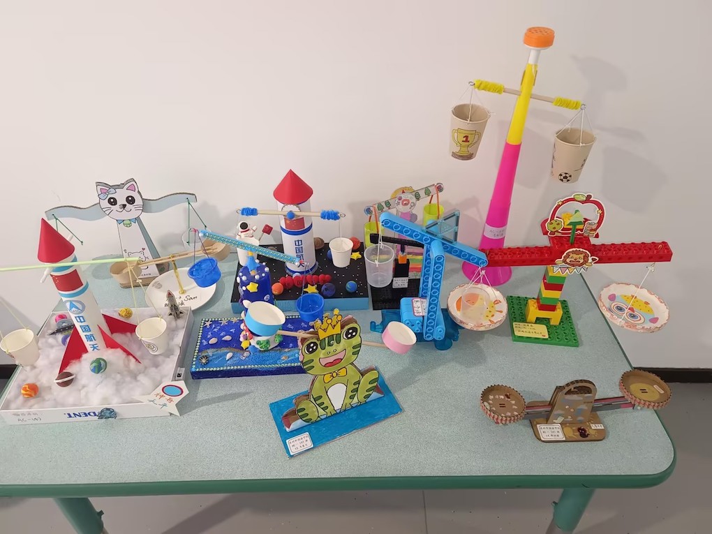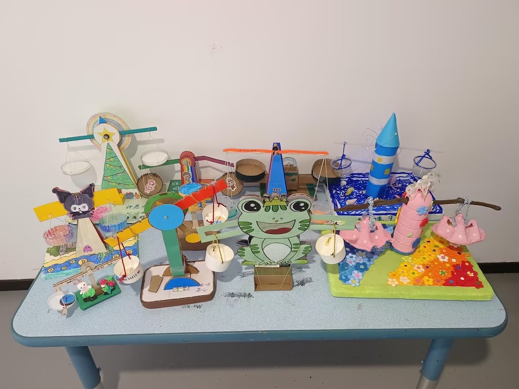评委老师围绕“安全实用性”“创意美观度”“操作平衡度”三个维度进行公正打分,每个班级选拔出6件优秀作品晋级年级评比。经过年级组评委的细致评审,最终评选出“最具美观奖”“最具创意奖”“最具平衡奖”,并为获奖学生颁发奖状。获奖作品还在四楼走廊集中展示,成为校园里一道独特的科学风景线。此外,所有参与制作的学生都获得了科学奖励星,这份鼓励让孩子们感受到了探索的成就感。