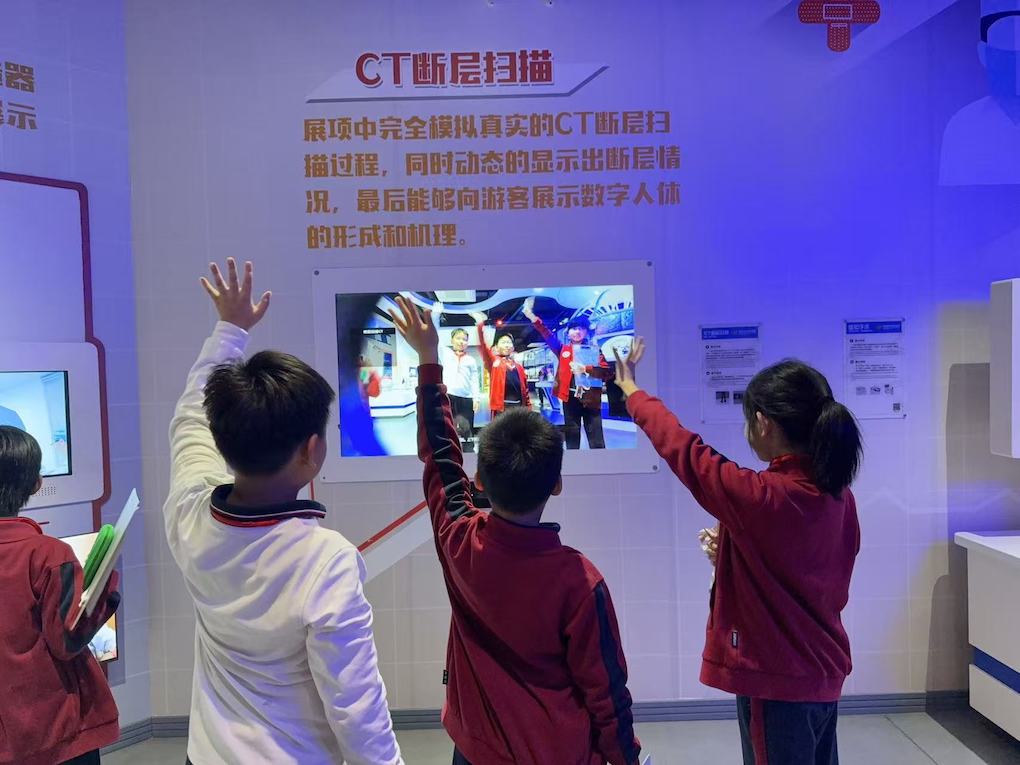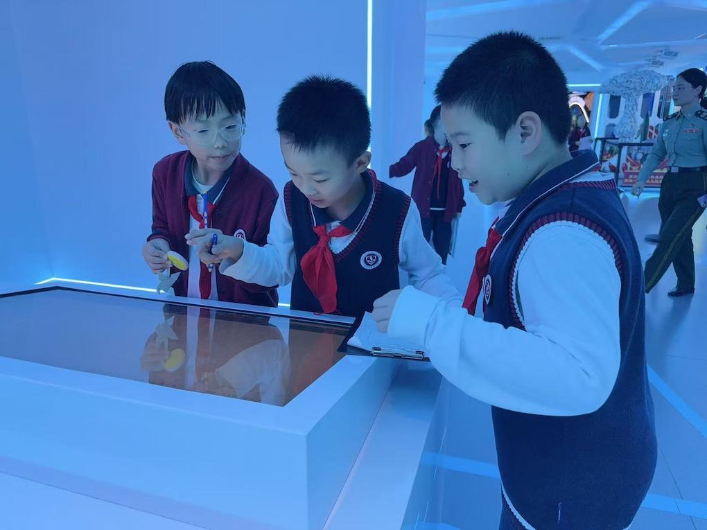 最热闹的当属AI互动区。智能导游的屏幕前,孩子们排着队用英语提问:“Can you tell me how robots work?”“What will future technology be like?”起初还有人紧张得声音发颤,但听到智能导游用温柔的语调耐心回应,胆子渐渐大了起来,从简单的单词到完整的句子,语言不再是课本上的黑体字,而是能与“科技朋友”对话的工具。有个孩子结束对话后,兴奋地拉着老师说:“原来英语真的能用来问我想知道的事!”