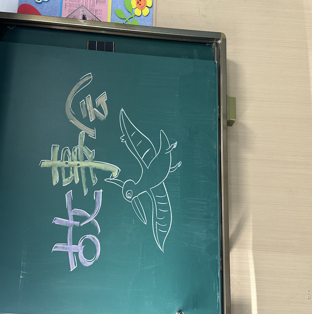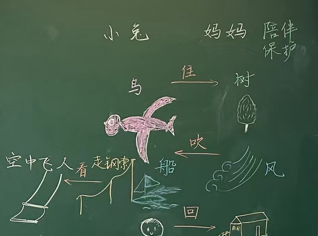 我们用黑板简笔画的方式一起梳理故事脉络,讨论角色的行为与选择。比如读《逃家小兔》时,孩子们会思考“兔妈妈为什么这么做”“小兔子为什么这么做”,在思辨中理解母爱;分析《图书馆老鼠》的绘画细节时,大家发现作者用暖色调营造出图书馆的温馨感,用细腻的笔触刻画老鼠的神态,慢慢学会从画面中捕捉隐藏的信息。