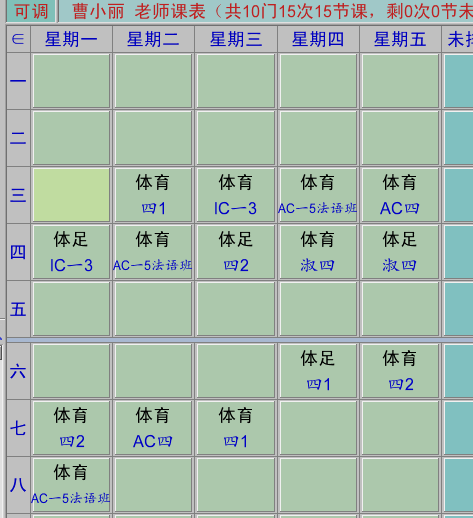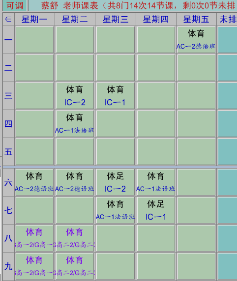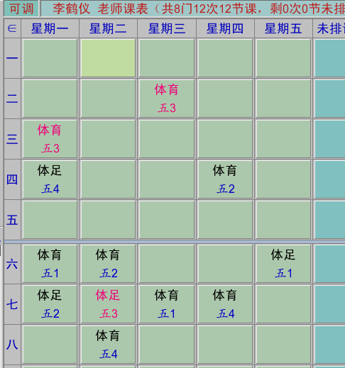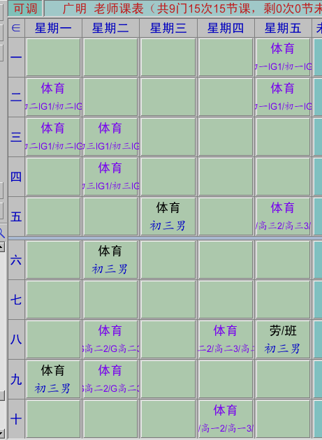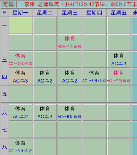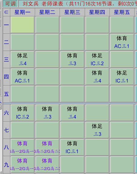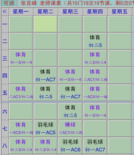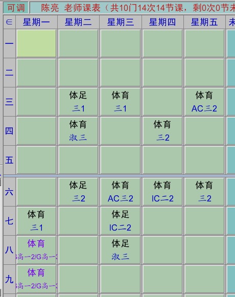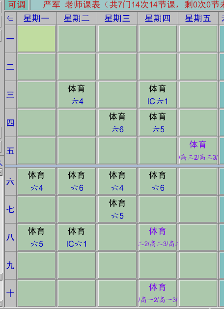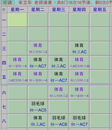 体育教师课表