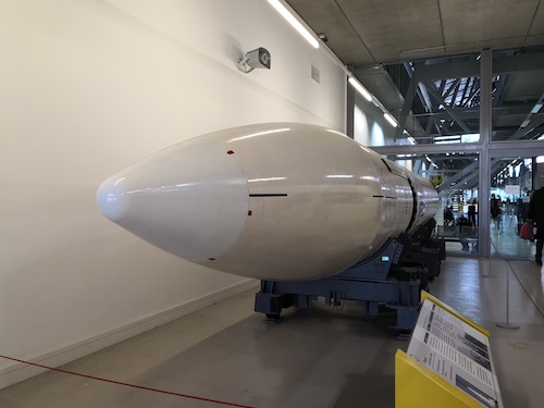 在一号馆“领空”的玻璃门外,一枚洲际导弹导弹平静躺在入口前方,似乎在告诉每一位前来参观的人,这是一个关于战争的故事。“它的名字叫北极星,全称洛克希德北极星A3型导弹,是由美国设计的。”旁边一个军事小专家解释道,“上世纪七十年代开始英国在潜艇上装备核弹,每艘英国前厅搭载16枚导弹北极星,每一枚导弹安装三枚核弹头,1994年‘北极星’被‘三叉戟’取代了。”“洲际弹道导弹能射多远?”旁边有人问。“不少于8000公里”,小军事家停顿片刻,骄傲地仰起头说:“我国的东风四十一洲际导弹射程可达14000公里呢!”随着一片惊叹同学们来到了展馆内。