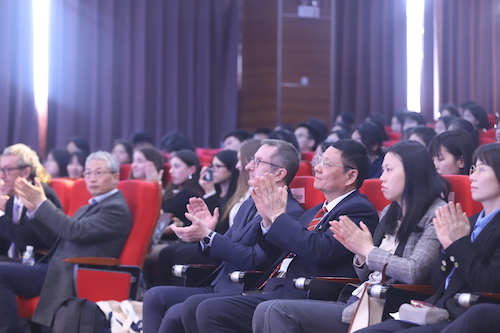 法国友校校长CARTON先生发表了致辞,他希望中法师生能够为加深两国之间的相互理解而不懈努力,未来希望双方在文化、语言、艺术等层面能加深交流。随同的中文老师,用极其幽默诙谐的语言,为大家传达了法方校长的想法。