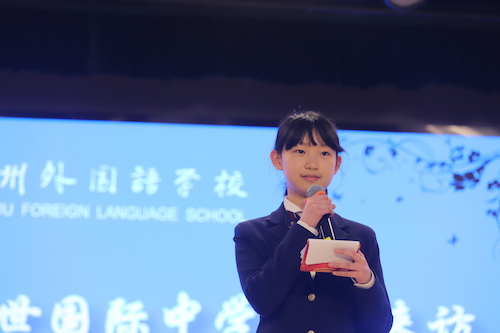 来自初二AC法语班的欧曼仪和蒋安轩,用流利的中法双语为我们介绍了当天来到现场的领导和嘉宾,苏州外事办公室欧非处的领导也出席了本次的欢迎仪式。