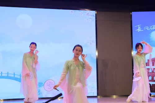 紧接着,来自初中AC班的5名女生在舞台上为法国师生带来了美轮美奂的舞蹈表演;来自初一IC法语班的徐焯,凭借着她的实力唱工,一首高难度的法语歌曲《Padam》,令法国师生掌声雷动,赞不绝口。