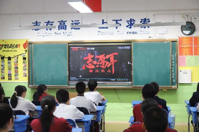 初二AC(1)班的同学在关颖老师的组织下,观看了爱国主义影片《志愿军▪雄兵出击》宣传片,重温了《长津湖》经典片段,追寻红色记忆,凝聚奋进力量。