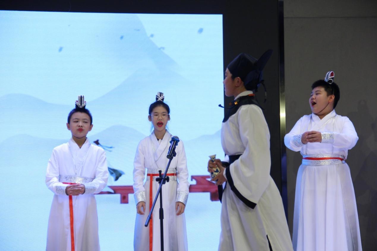 远远瞥见,满墨潇洒少年。”他步履踉跄,泼墨写江山。说着便下河捞月,却独留三千诗篇。初一AC2班《将进酒》,带我们梦回唐朝。铿锵的鼓声,激昂的诗词,优美的画卷,再次将会场气氛拉向高潮。