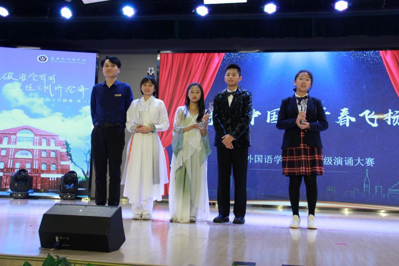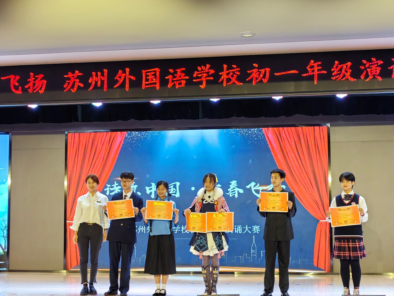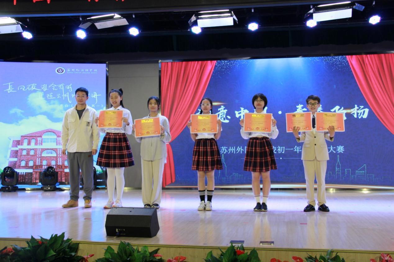 最后,经评委们的认真评议,最终角逐出本次演诵比赛的最佳表演奖、最佳创意奖和最佳演诵奖,分别由教导处倪波主任、李瑞主任和初一年级冯文轩组长为获奖班级颁奖。