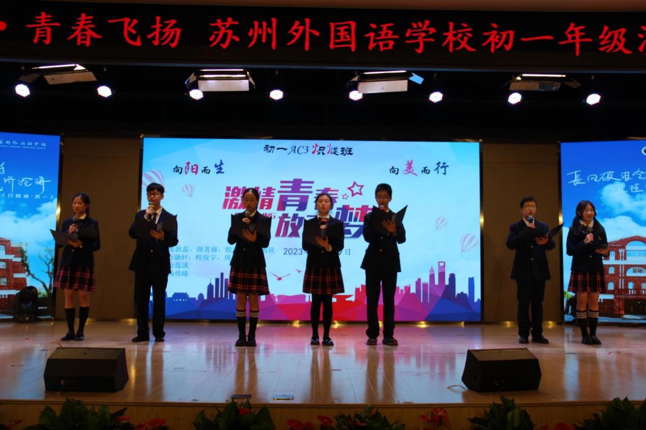 紧接着是初一3班带来的《青春中国》,少年无畏,青春鼎沸。一路追逐,少年风骨。以青春之我,逐华夏之阳。