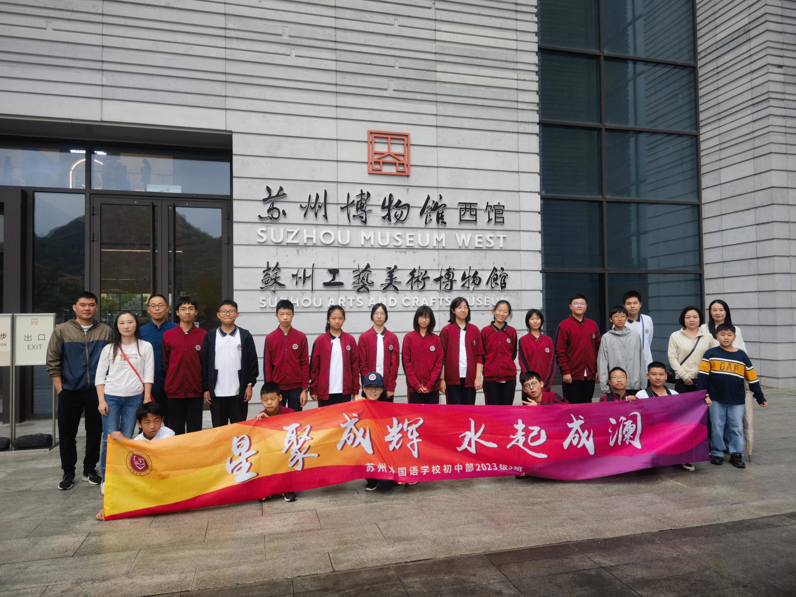 10月7日,苏州外国语学校初二(3)班的师生们前往苏州博物馆西馆进行了一次别开生面的历史文化之旅。此次参观主要围绕苏州历史展览和亚述特展展开,让师生们领略了苏州悠久的历史之美和遥远的亚述文明。