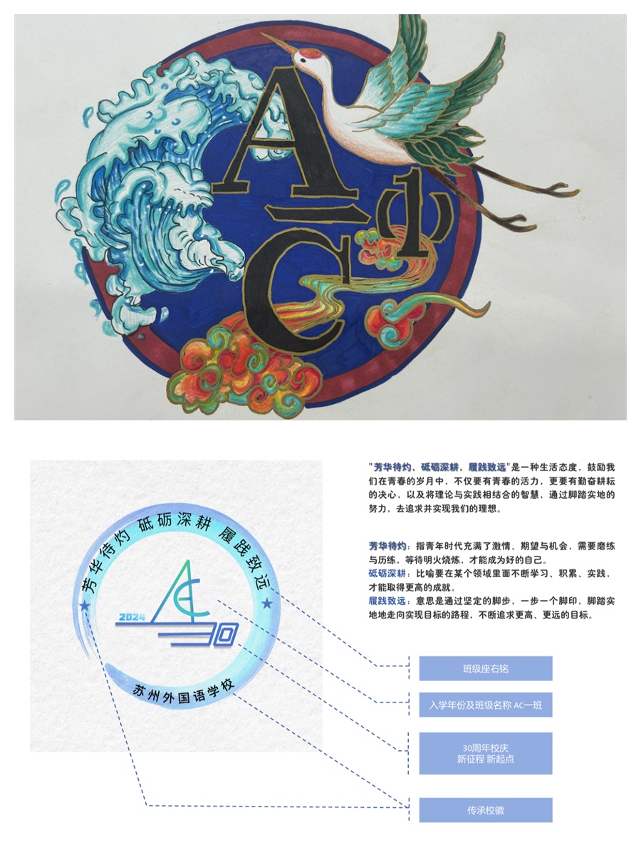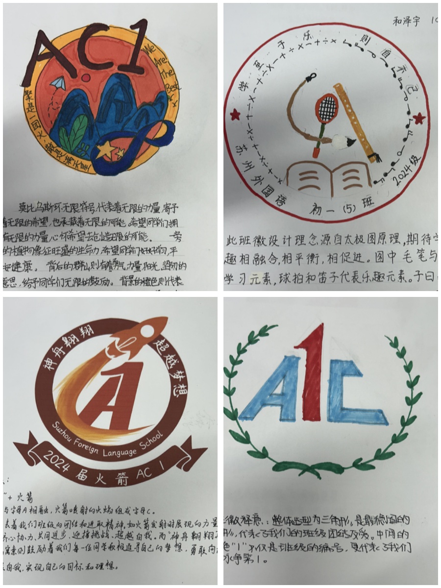 为丰富校园生活,进一步加强班级的凝聚力,发扬学生的团队精神与创新精神,学校举行班徽班训设计活动。AC1班的同学们充分展现个性化创意,运用自己对艺术、设计、语言的理解,打造出充满班级特色的、颇具辨识度的班级品牌。接下来让我们一睹为快,领略同学们的风采!