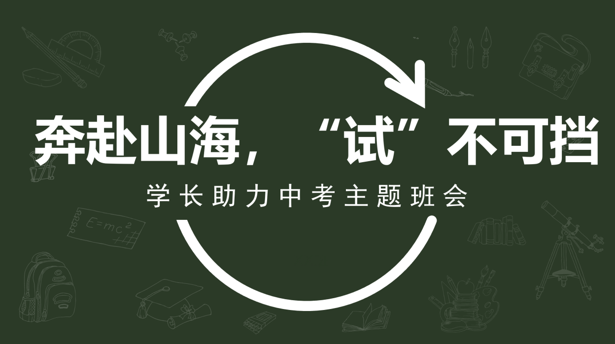 近日,初三(4)班召开了以“奔赴山海,试不可当”为主题的学长助力中考主题班会,有幸邀请了高三(3)班的三位学姐(吴靖潜,韩语辰,万佳)分享了初三下如何规划,如何发力,各科如何统筹安排才能更好的迎接中考。