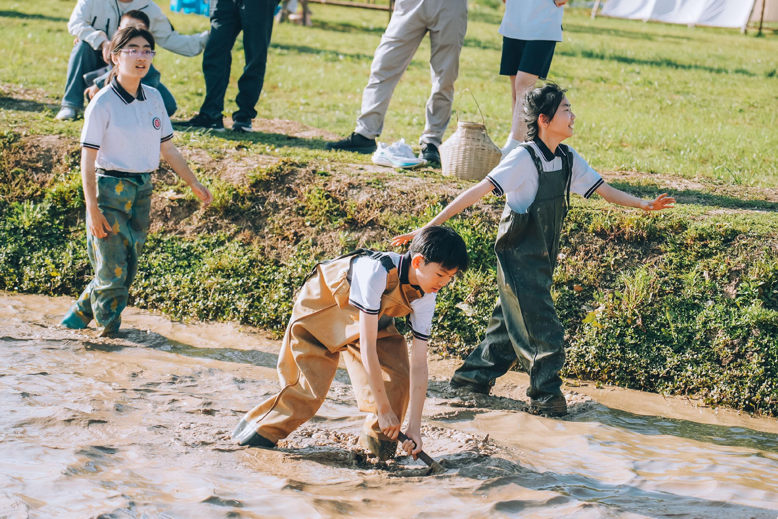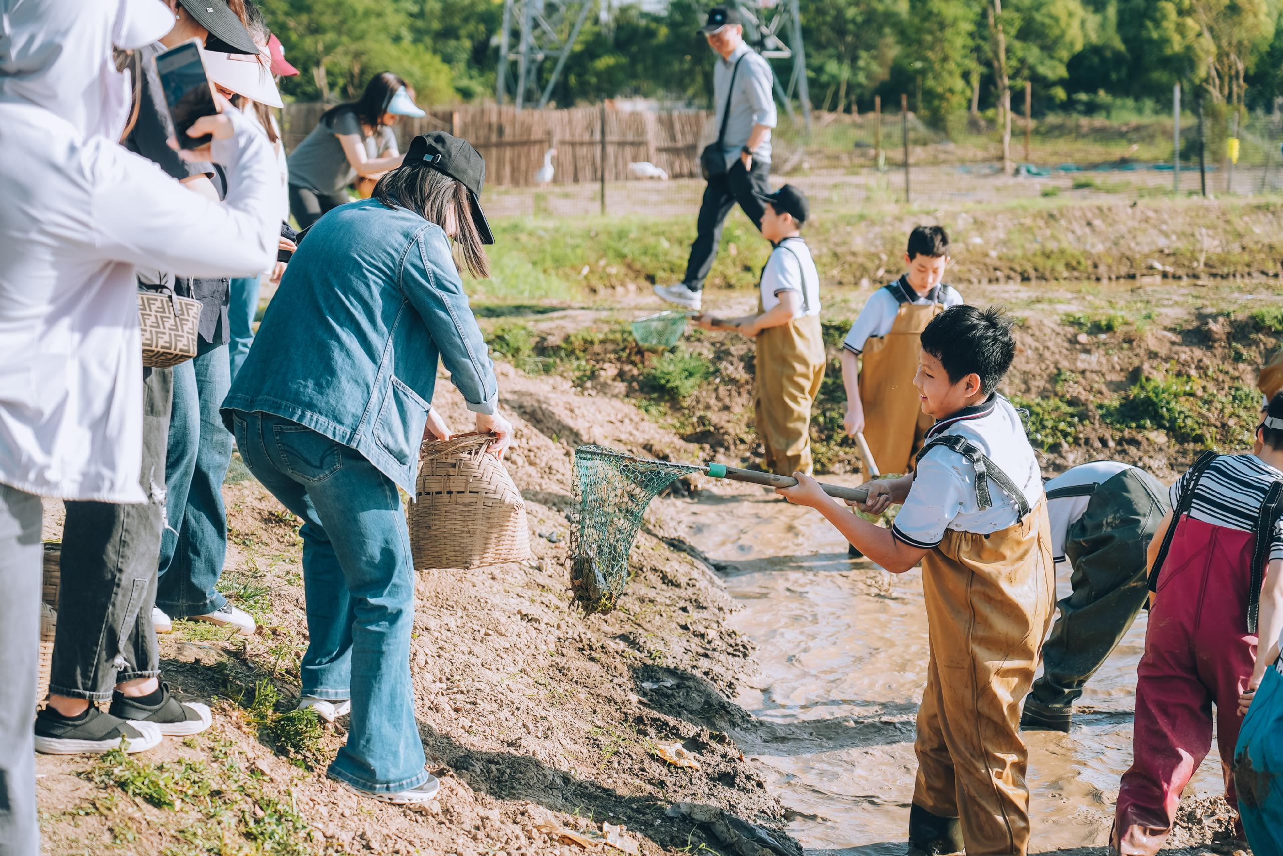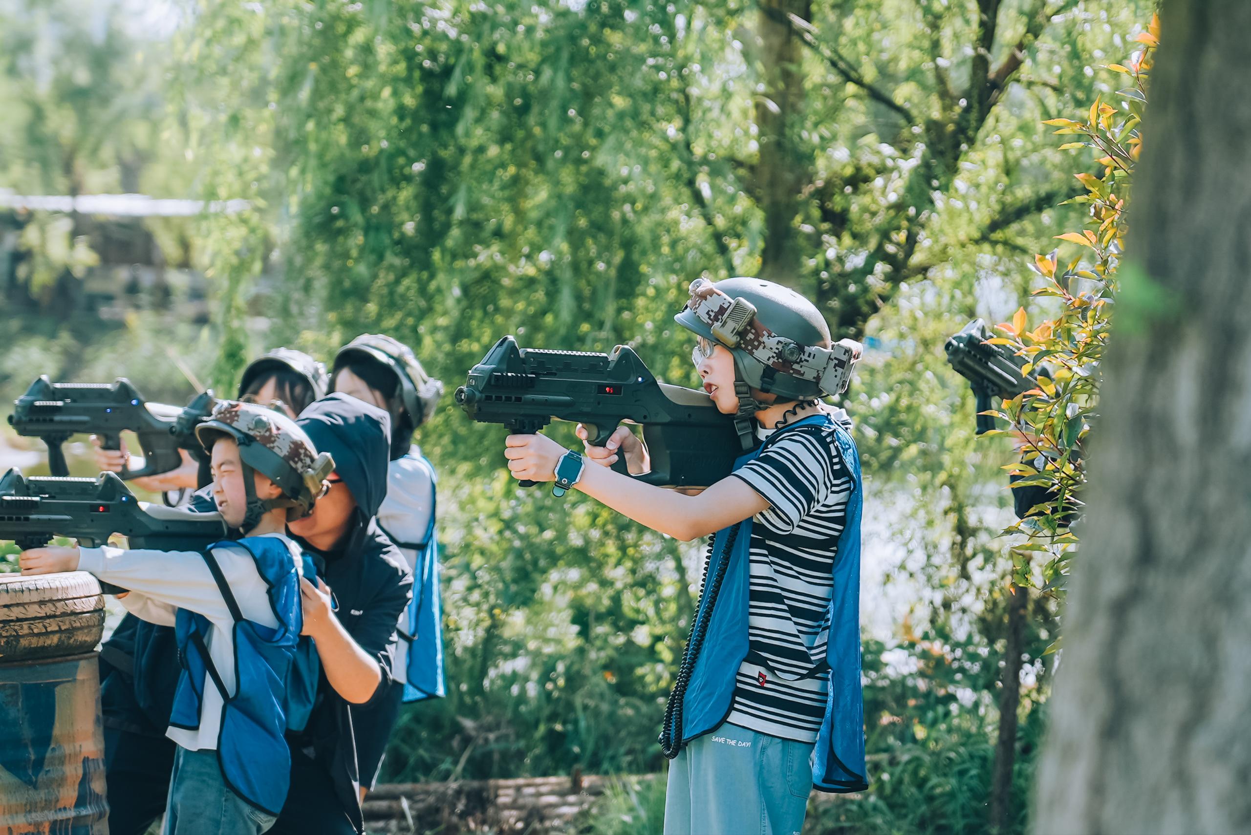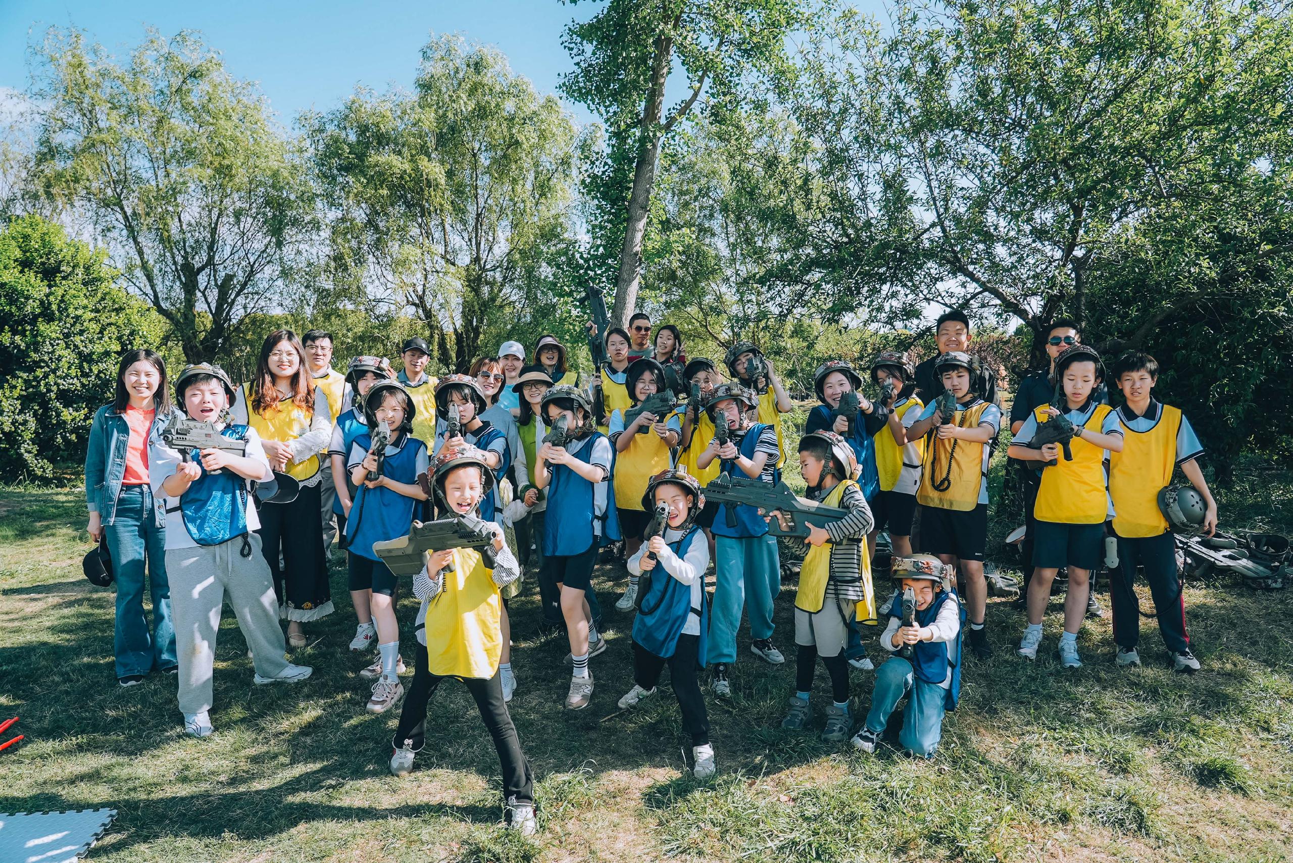 活动当日,公园内繁花似锦,绿意盎然。在抓鱼抓鸡环节中,家长和孩子挽起衣袖,默契配合,不仅体会到了劳动的乐趣,也在协作中拉近了距离,留下温馨难忘的回忆。在划船的活动中,师生同坐一舟,共握船桨,在波光粼粼的水面上缓缓前行。春风拂面,大家欣赏着两岸的自然风光,分享着生活的趣事,惬意十足。最令人热血沸腾的是CS对战环节,大家化身“战友”,分成红蓝两队展开激烈角逐。丛林间,大家时而匍匐前进,时而协同作战,战术交流声与欢呼声交织。这场“实战”不仅考验了团队协作能力,更打破了家校间的隔阂,让老师、家长与学生在并肩作战中深化了解,凝聚起家校共育的强大合力。