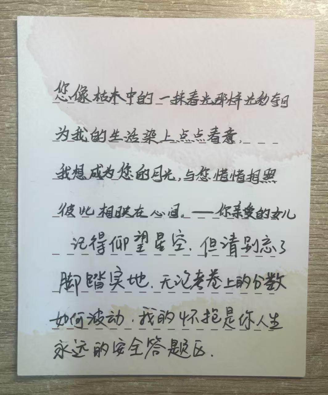 学生用三行诗书写母爱,母亲以文字回赠期许。稚嫩笔迹与成人笔锋在卡片上交汇,形成独特的亲子“对话档案”。