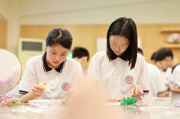 表达感恩的方式有很多种,初一Ac1班的同学们来到裸心泊画舫,亲手为妈妈们制作画扇,一束束干花被细致的剪切粘贴,有低着头思考主题的,有和同学合作完成的,“我妈喜欢蓝色,把你的蓝色的花借给我一些吧”“我就简单做一个,少贴一些花,我妈喜欢简单的”每一个孩子都在把自己对母亲的爱细致的贴在了扇子上,当妈妈们拿到扇子时笑容也变甜了。