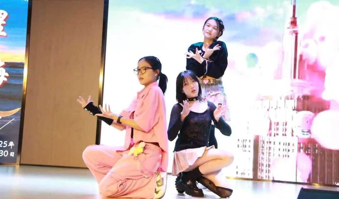 第一篇章“薪火灼天”聚焦于成长与思辨。程俊宇与顾洪宇的漫才表演《看医生》,以幽默风趣的方式隐喻了“学习如体检”的成长哲理,呼吁同学们以自省姿态直面知识积累中的不足。紧接着,于欣恬、张若初、颜茗睿的韩舞《Hot mess》将现场气氛推向高潮,强劲舞步与张扬台风诠释了青春的不羁与冲破束缚的勇气。