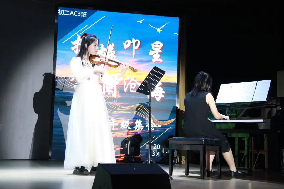 集会在学生自制视频的光影流转中盛大开启,视频展现了同学们的日常生活与创意瞬间,为整场活动奠定了诗意与活力的基调。随后,金蕴溪与庞歆蕊带来的乐器合奏《鸟之诗》,以其悠扬旋律与灵动音符,为集会注入了温暖而充满希望的开篇。