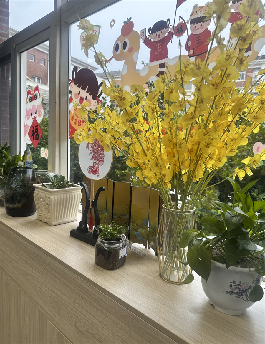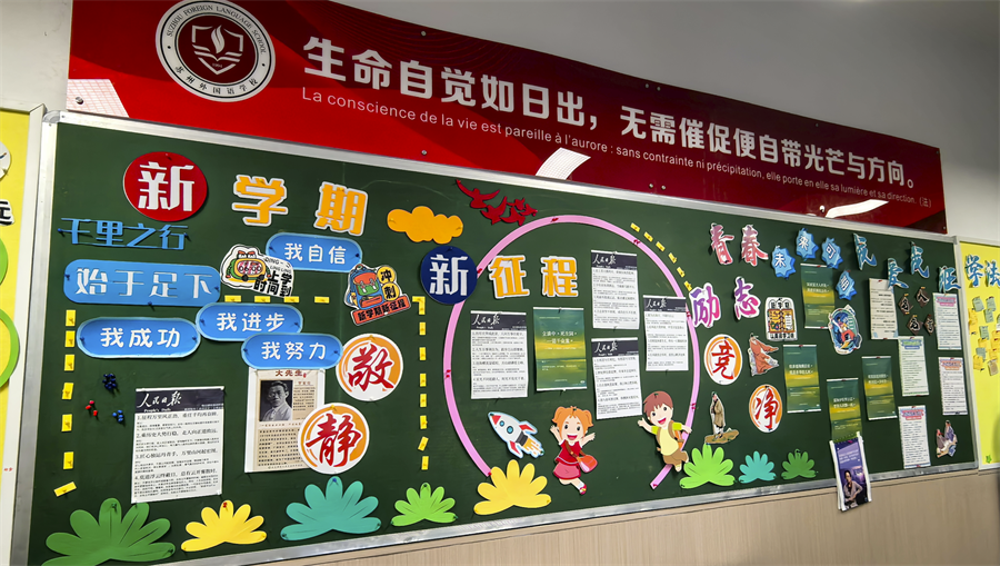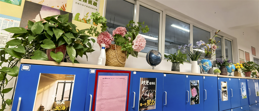 更令人眼前一亮的是班级绿植养护实现全员“零枯叶”,多个班级摆放活鲜花,初秋的教室焕发勃勃生机。板报、宣传栏也完成“焕新”,呈现出新学年的新气象。