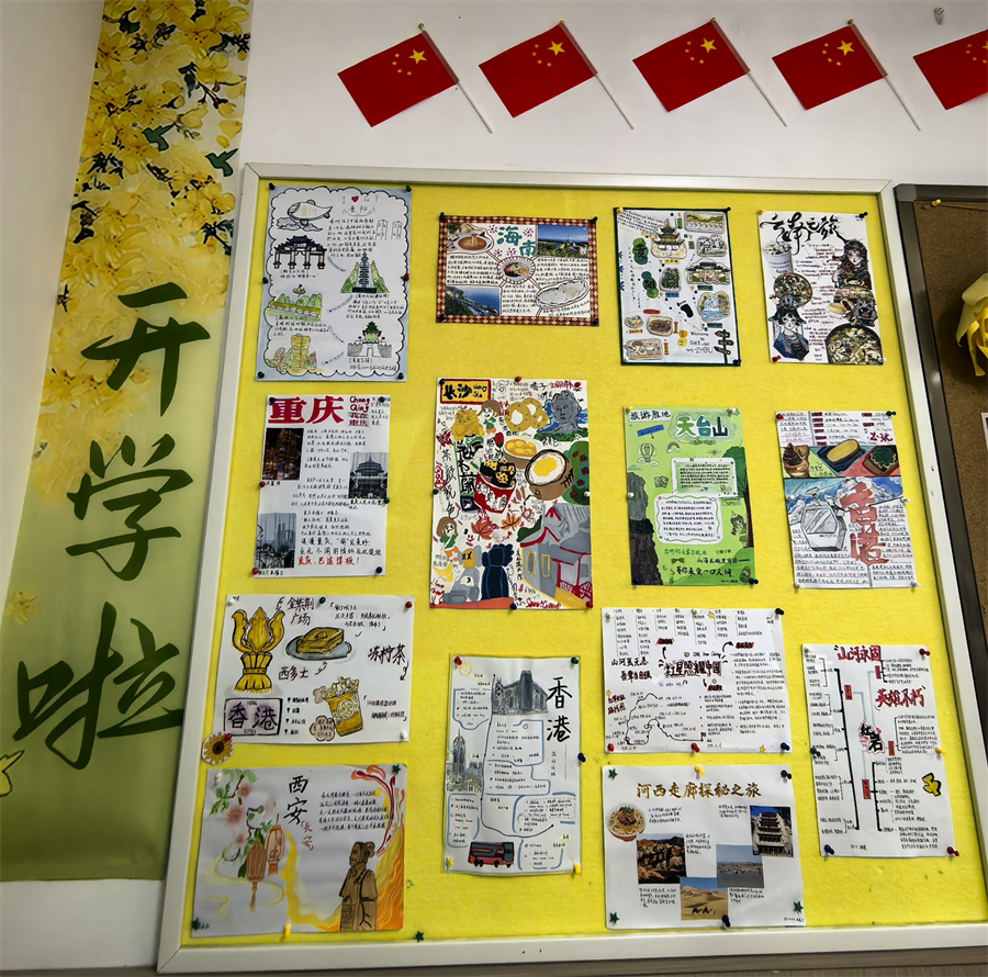 学生原创作品不仅在数量上显著提升,更在质量上展现出超群的学术素养与审美表达。初二3、初二4、初二AC1、初二AC2、初三AC3等班级呈现大量高质量作品,涵盖软笔书法、手绘板报、原创篇章等。初二4、初二AC1、初二AC2同学的“手绘旅游攻略”,有机融合地理、美术与语文等多学科知识,正是初中部特色课程倡导“学以致用、跨界融合”理念的生动体现。
