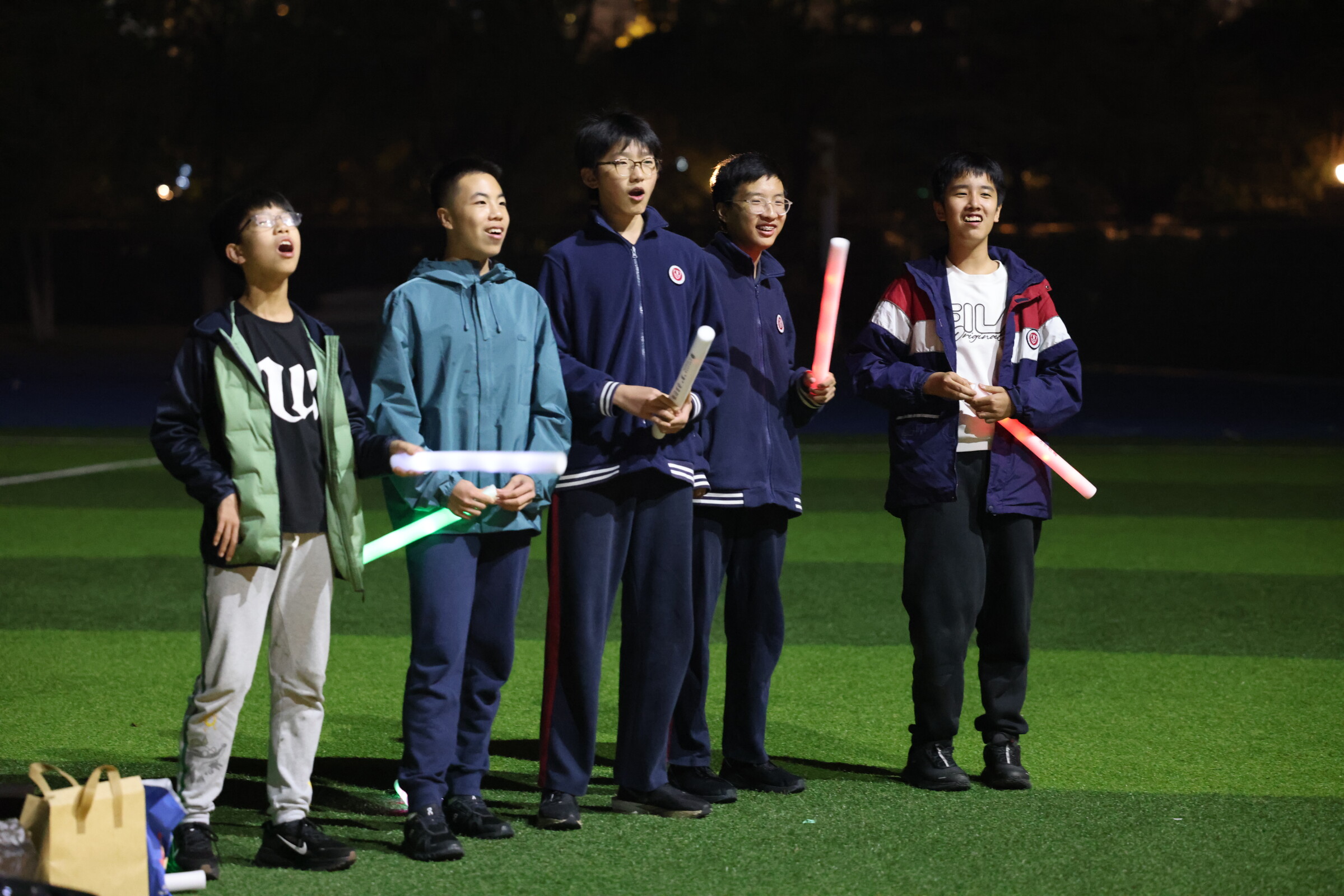 暮色四合,暖黄的路灯为操场披上朦胧光晕。周日傍晚,一场特殊的音乐会在这片绿茵上悄然绽放——初三AC2班的同学们用光亮、歌声与欢笑,将期中考试后的疲惫化作跃动的音符,兑现了半年前那个关于“星空下歌唱”的美好约定。