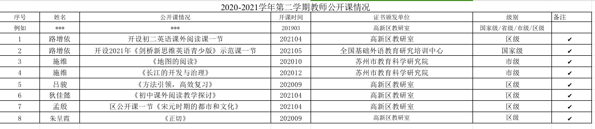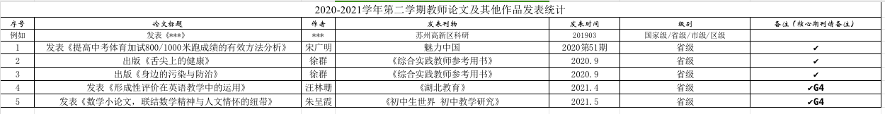 2020-2021学年第二学期教师教科研成果统计(初中)