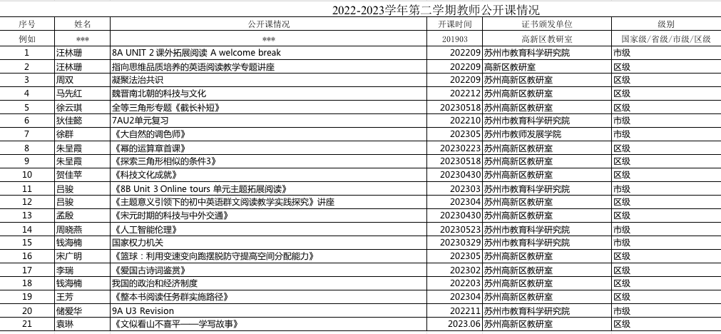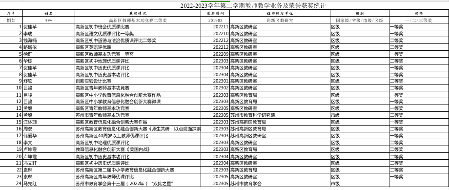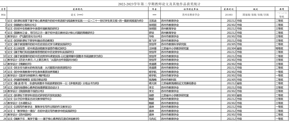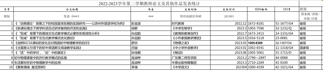2022-2023学年第二学期教师教科研成果统计(初中)